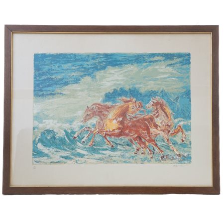 ALIGI SASSU (Milano, 1912 - Pollença, 2000) Cavalli a galoppo, multiplo su carta 50 x 70 cm