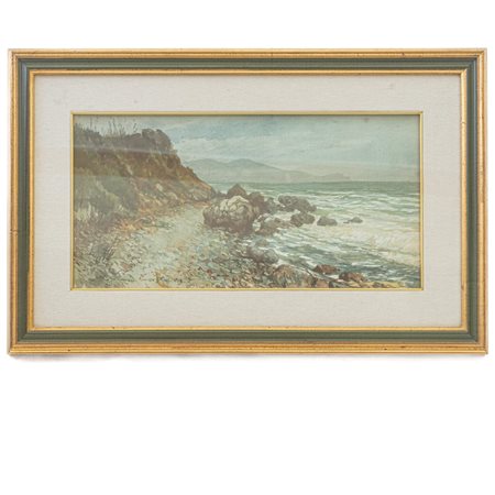 ATTILIO STEFANORI (Roma, 1860 - 1911) "Circeo" acquarello 47 x 25 cm