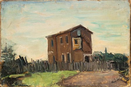 ALBERTO ZIVERI (Roma, 1908 - 1990) Paesaggio di campagna con casolare Olio su tela 20 x 30 cm