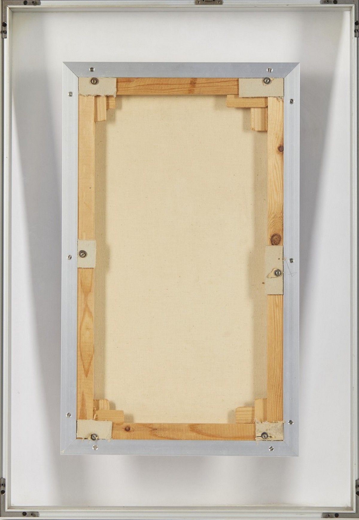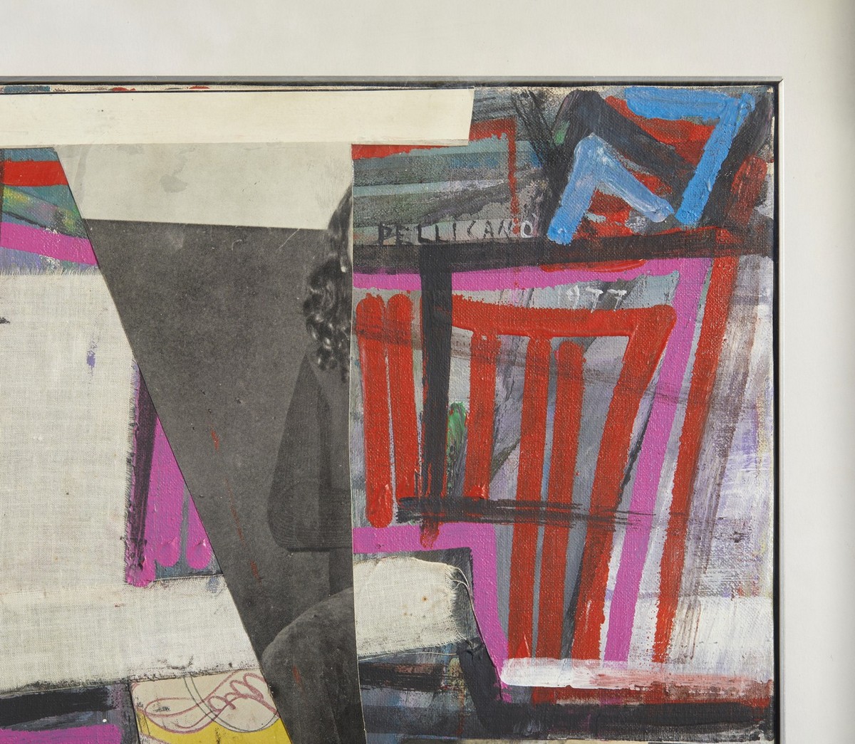 PELLICANO DOMENICO (n. 1952) RECUPERO, 1977. Tecnica mista su tela. Cm 30,00 x 50,00. firma, data, titolo. Cornice presente