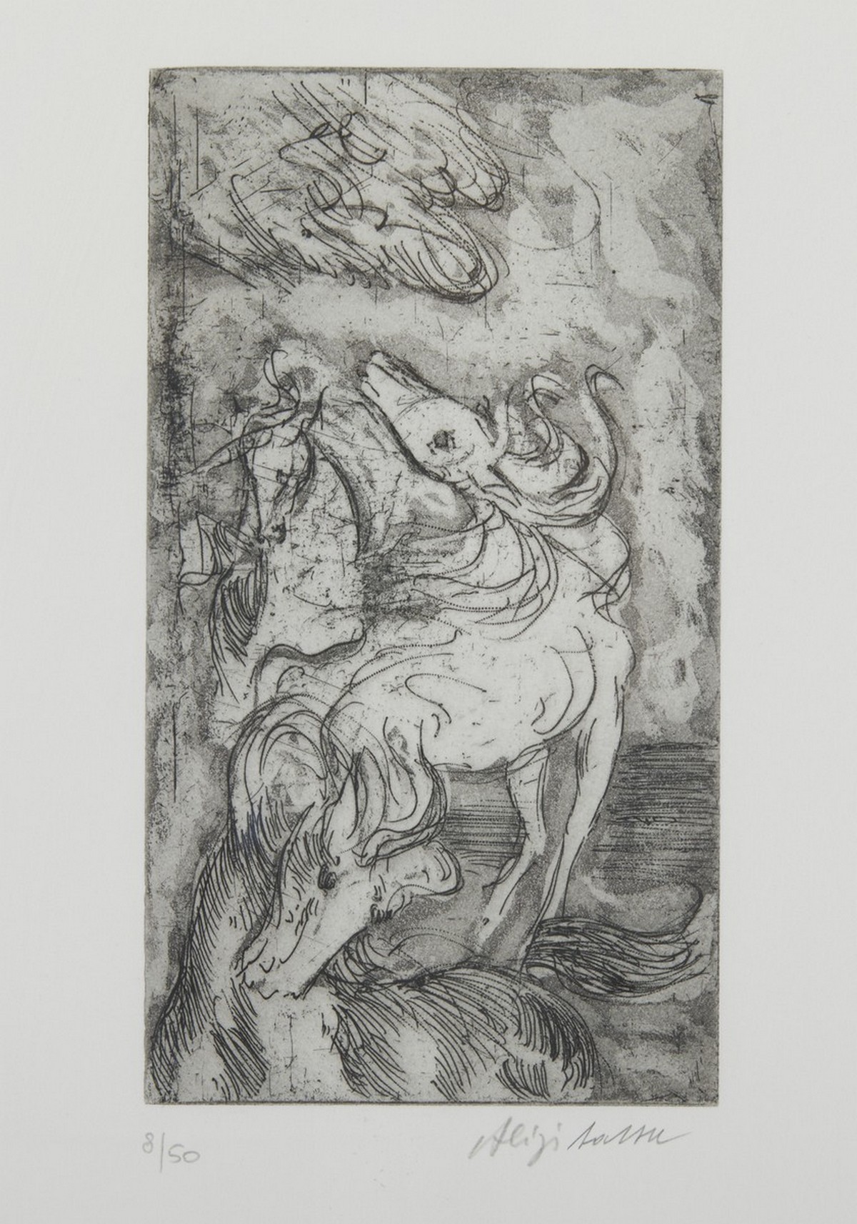 - Senza titolo, acquaforte, firma, es.n. 8/50, dimensioni lastra: 9x17,5 cm;