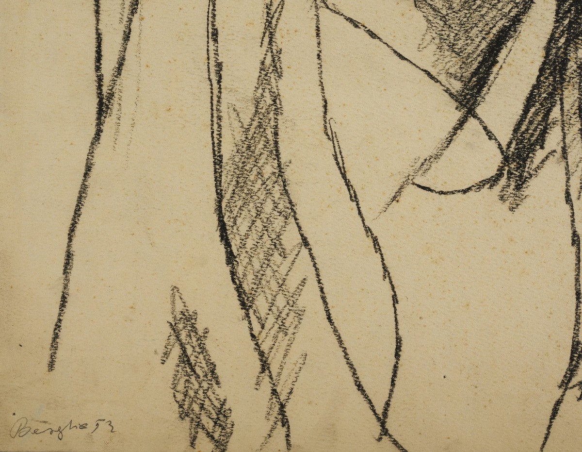 BASAGLIA VITTORIO (1936 - 2005) SENZA TITOLO, 1953. Carboncino su carta. Cm 31,50 x 43,00. firma e data.