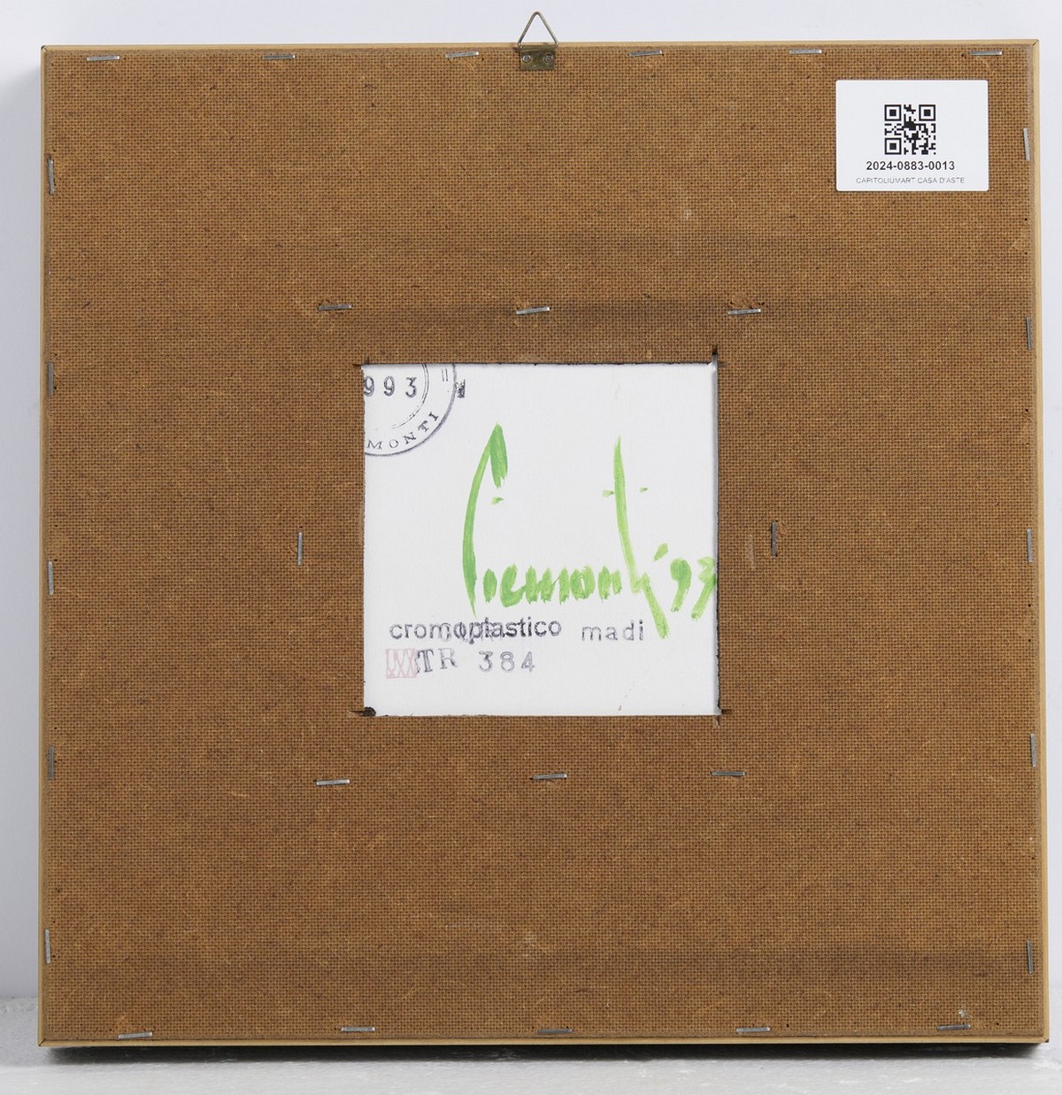 PIEMONTI LORENZO (n. 1935) CROMOPLASTICO MADI, 1993. Tecnica mista . Cm 19,00 x 19,00. sul retro: firma, data, timbro dell'artista. Cornice presente
