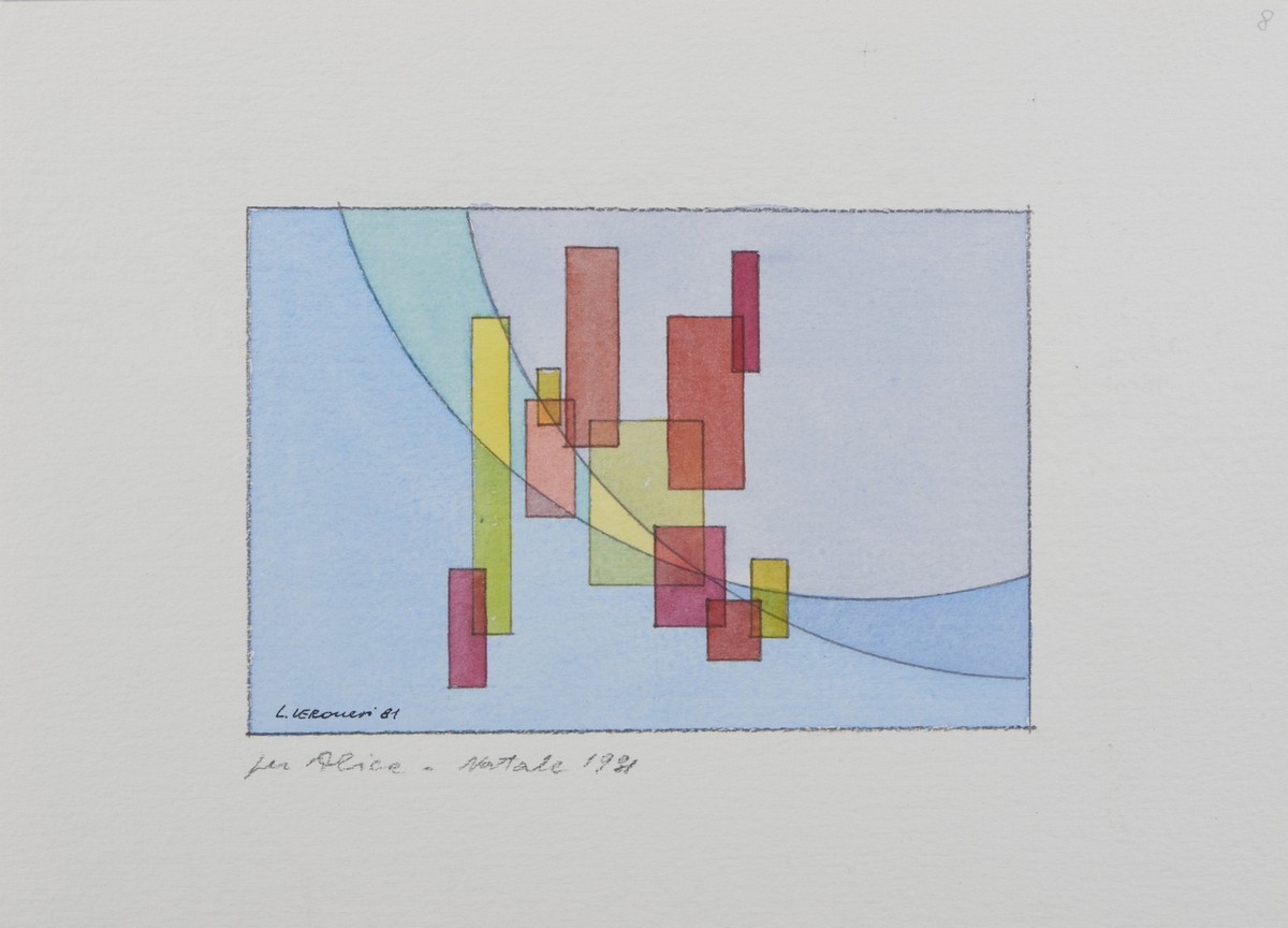 VERONESI LUIGI (1908 - 1998) COMPOSIZIONE, 1981. Acquerello su carta. Cm 25,00 x 18,00. firma, data e dedica.