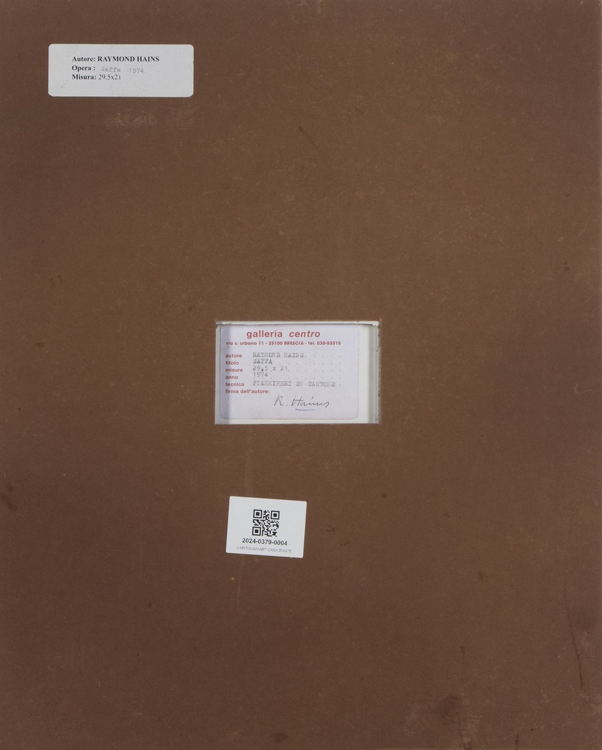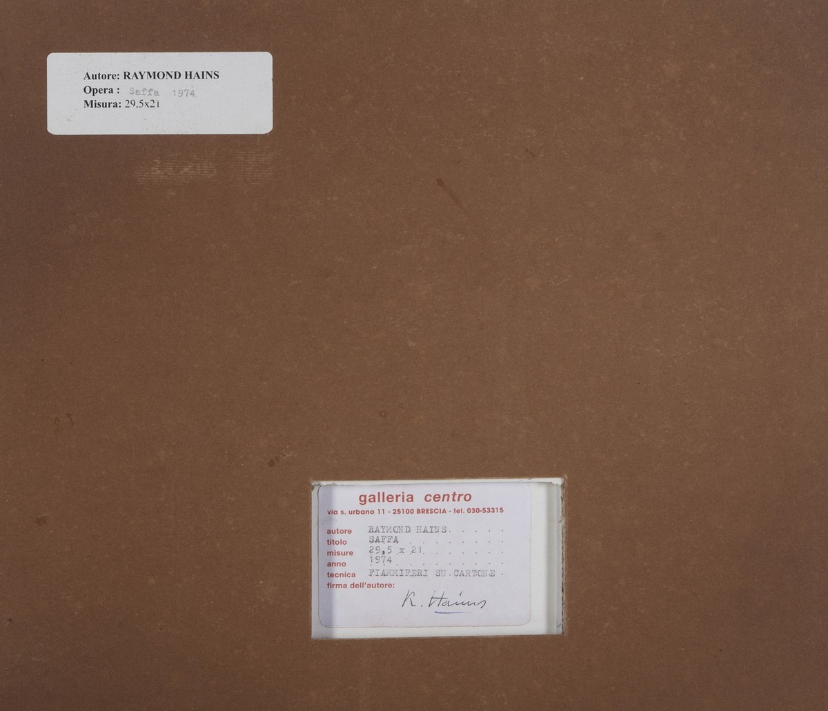 HAINS RAYMOND (1926 - 2005) SAFFA, 1974. Fiammiferi su cartone. Cm 21,00 x 29,50. sul retro: firma e etichetta Galleria Centro, Brescia