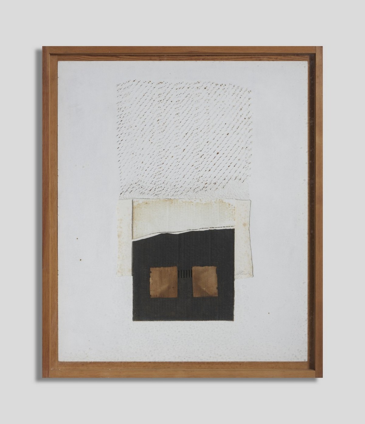 MOMOLI VINICIO (n. 1942) SENZA TITOLO. tecnica mista e collage su tavola. Cm 80,00 x 95,50. firma. Cornice presente