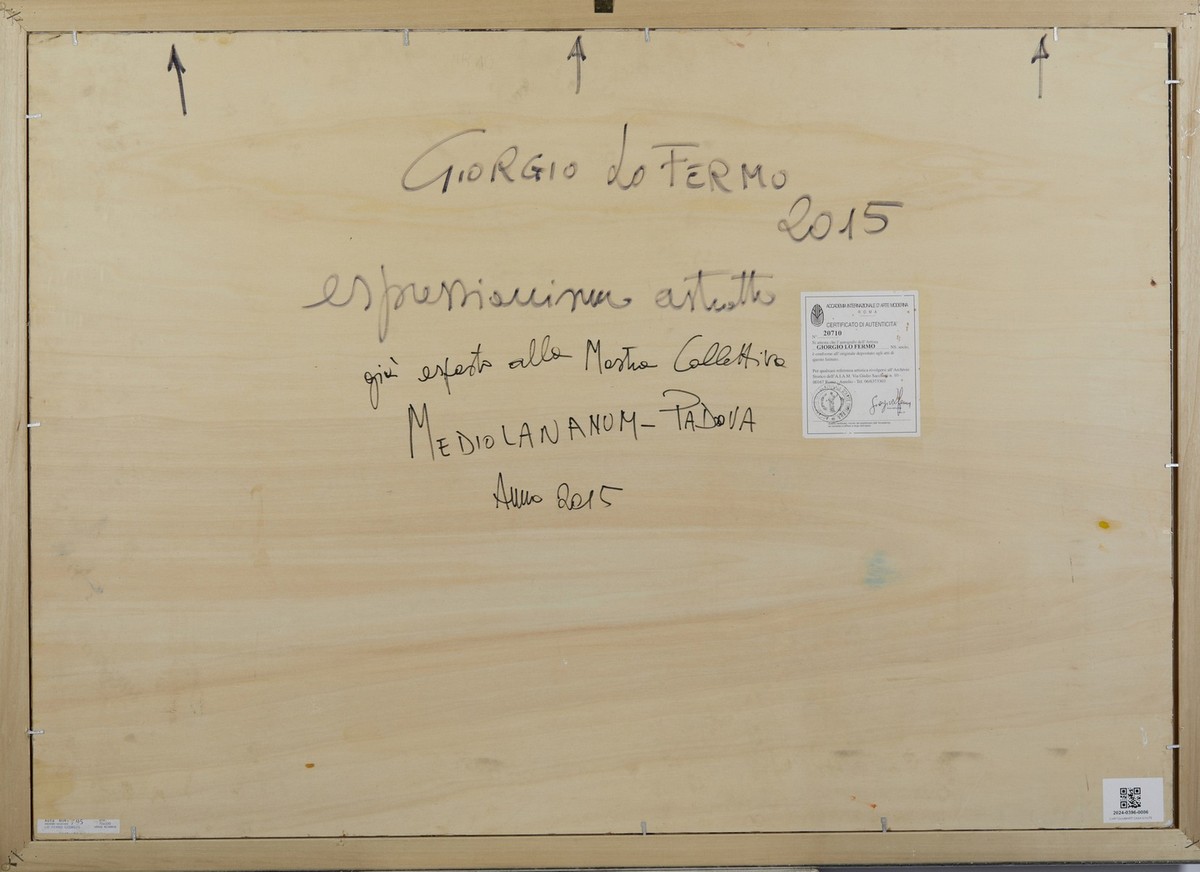 LO FERMO GIORGIO (n. 1947) ESPRESSIONISMO ASTRATTO, 2015. Olio su tela applicata su tavola. Cm 100,00 x 70,00. sul retro: firma, data, titolo, iscrizione: "già presente alla Mostra Collettiva Mediolanum Padova Anno 2015", certificato di autenticità Accademia internazionale di arte moderna, Roma