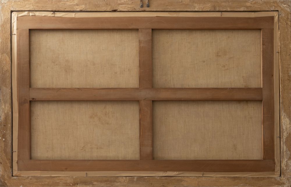 Olio su tela. Cornice in legno intagliato e dorato. Cm. 48,5x85.