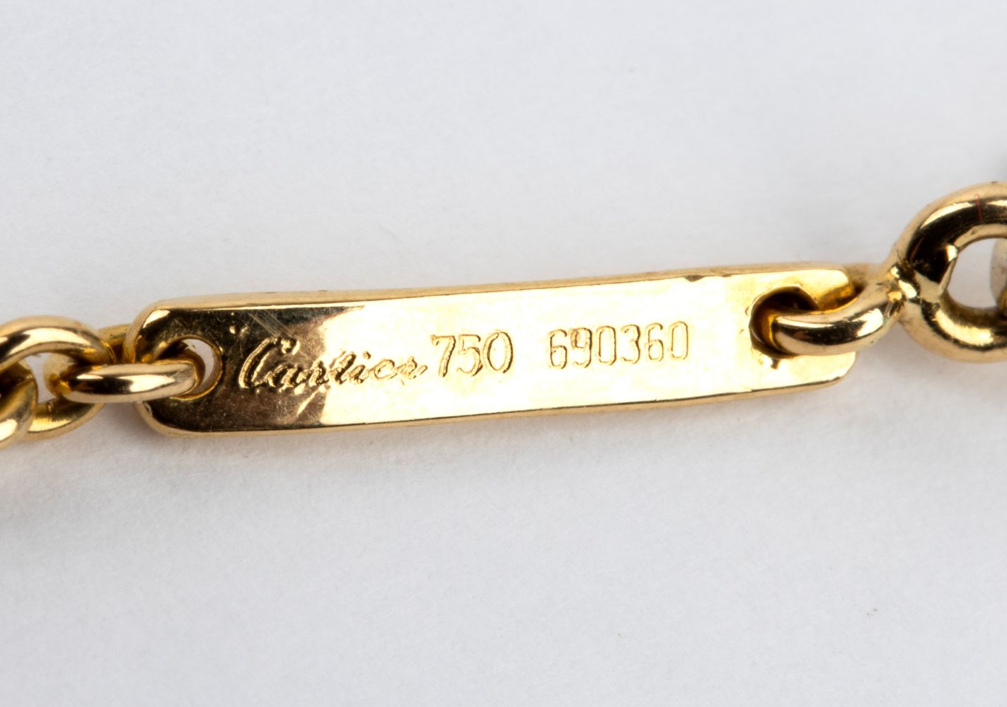 Punzonato "750 - CARTIER - 690360 e marchi francesi dell'oro". Lunghezza catena 40,5 cm. Peso 7.3 gr.