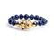 sfere di lapislazzuli alternate a distanziali in oro, fermezza a scomparsa in oro giallo 18k raffigurante un volto di orientale, impreziosito da diamanti e rubini.