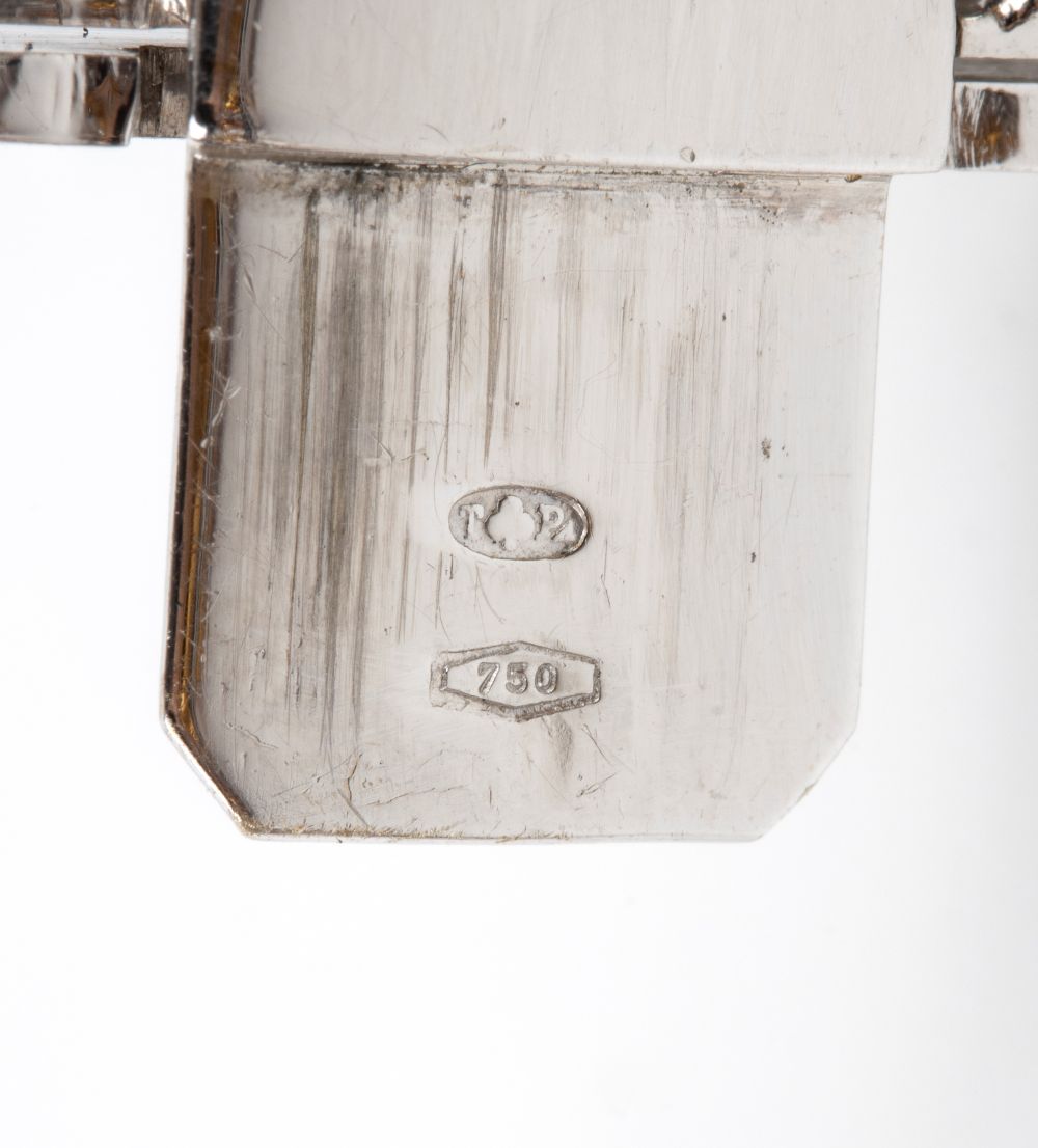 Punzonato "750 - TP  - marchio dell'oro francese - marchio di importazione". Peso complessivo 646 gr.