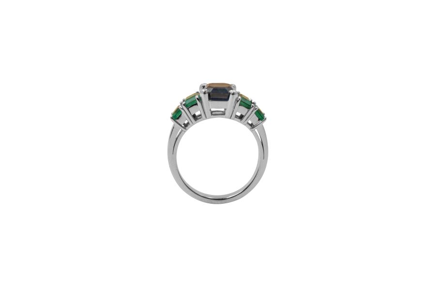 Anello in oro con zaffiro e smeraldi