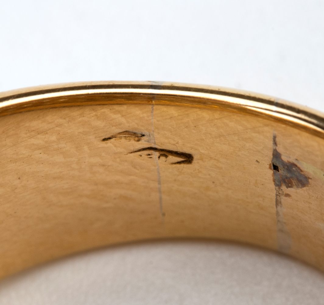 Punzonato "750". Dimensione fronte 2 x 2,5 cm. Misura IT 20 - Misura USA 9. Peso 20,2 gr.