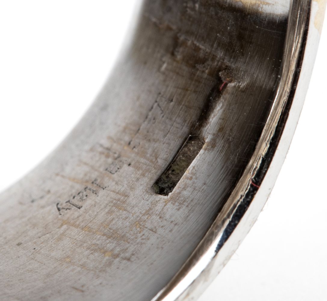 Punzonato "750 - MADE IN ITALY". Dimensione fronte 25 x 23 mm. Misura ITA 22 - Misura USA 10. Peso 22,5 gr.