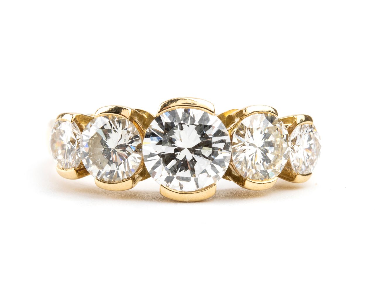 in oro giallo 18k incastonato con linea di 5 diamanti.