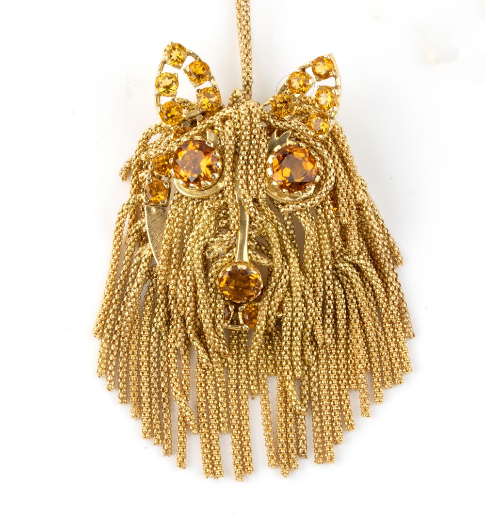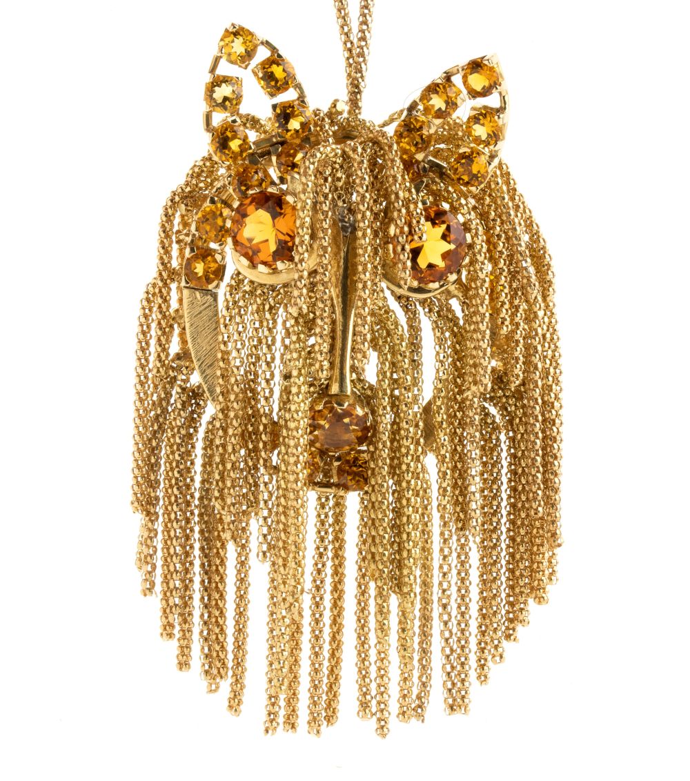 catena in argento 925/1000 con gocce di quarzi citrini, pendente in oro 18k, a forma di testa di cane, dettagli in quarzi citrini.