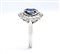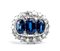montatura in oro bianco 18k, incastonato con tre zaffiri incorniciati da diamanti. .