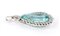 acquamarina centrale a forma di goccia contornata da diamanti incastonati con motivo a foglia.