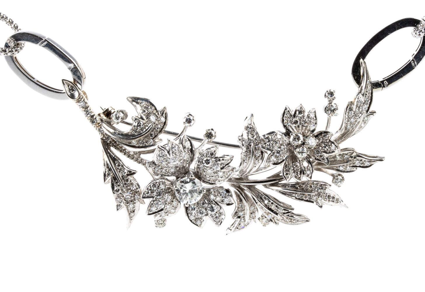 Lotto 81 | Spilla - pendente e catena in oro e diamanti Italia, anni '50
