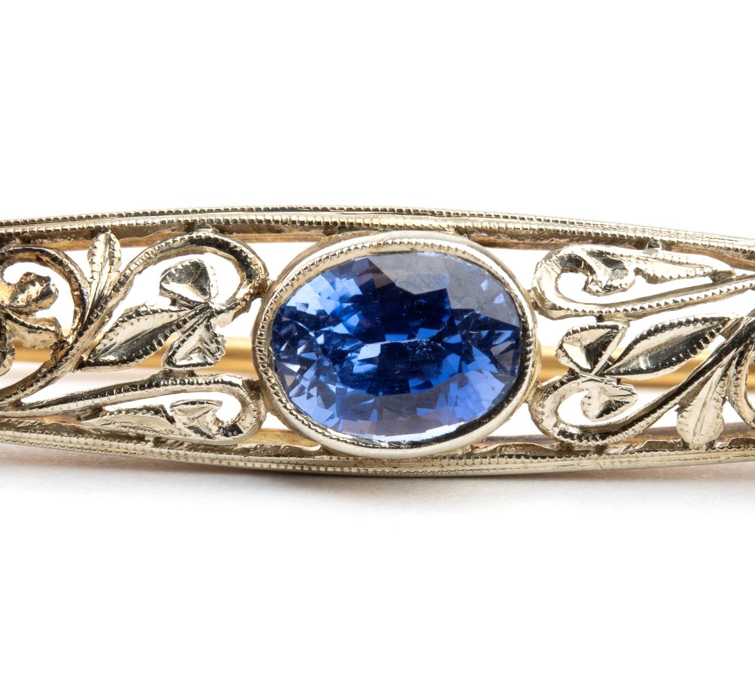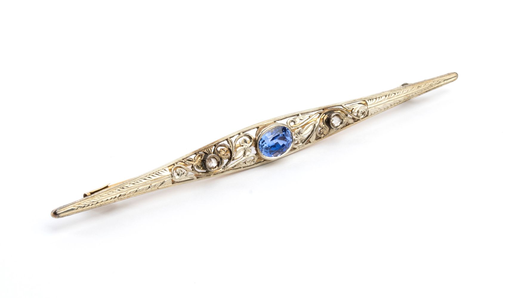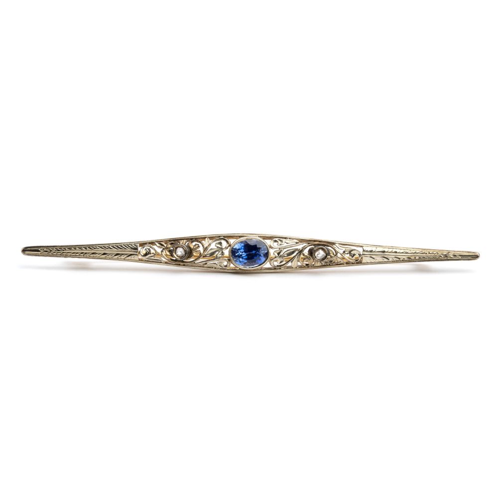 Spilla a barretta in oro e argento con zaffiro inizio XX secolo