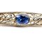 in oro e argento, traforata a motivi di rami e foglie, impreziosita da uno zaffiro sintetico e copia di diaamanti taglio a rosa.