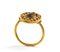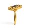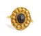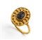 realizzato in oro ad alto titolo, di forma ovale, decorato con grani disposti a cornice di una pietra incisa raffigurante uno scarabeo.