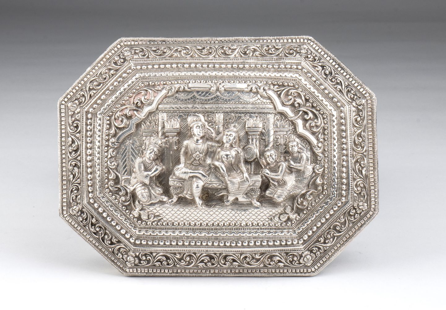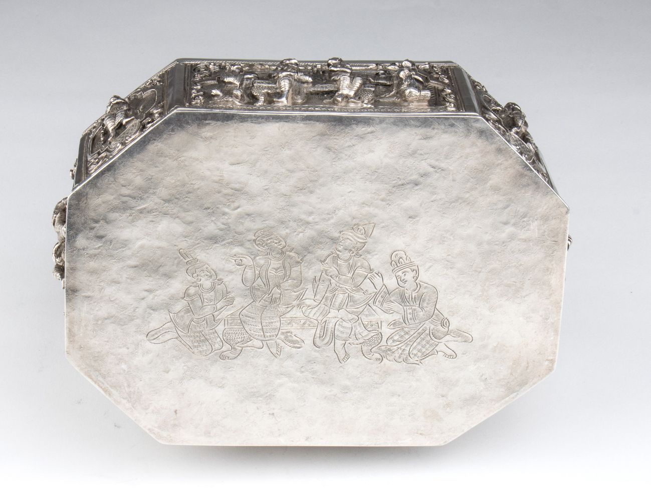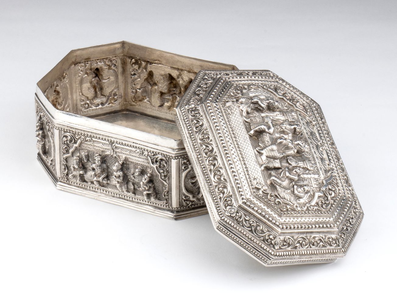 Cofanetto ottagonale in argento Birmania, XIX secolo