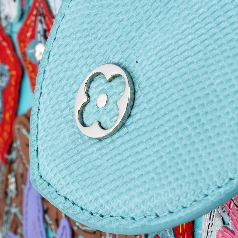 Correlata di una tracolla in pelle gialla regolabile opzionale e una patta crossover che si inserisce dietro il prominente rosso/ argento LV .