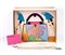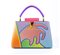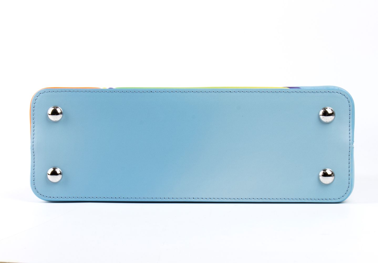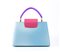 realizzata in pelle liscia multicolore nei toni pastello, con chiusura con patta, fodera interna in pelle rosa e dettagli in metallo argentato.