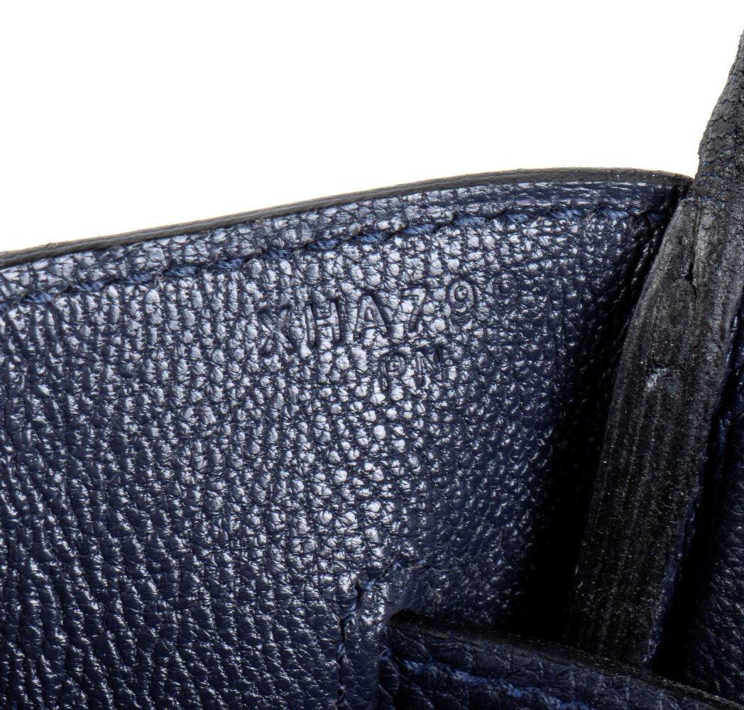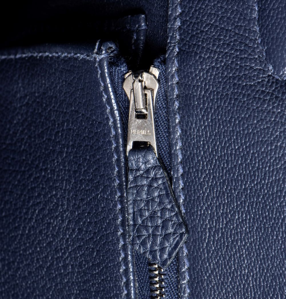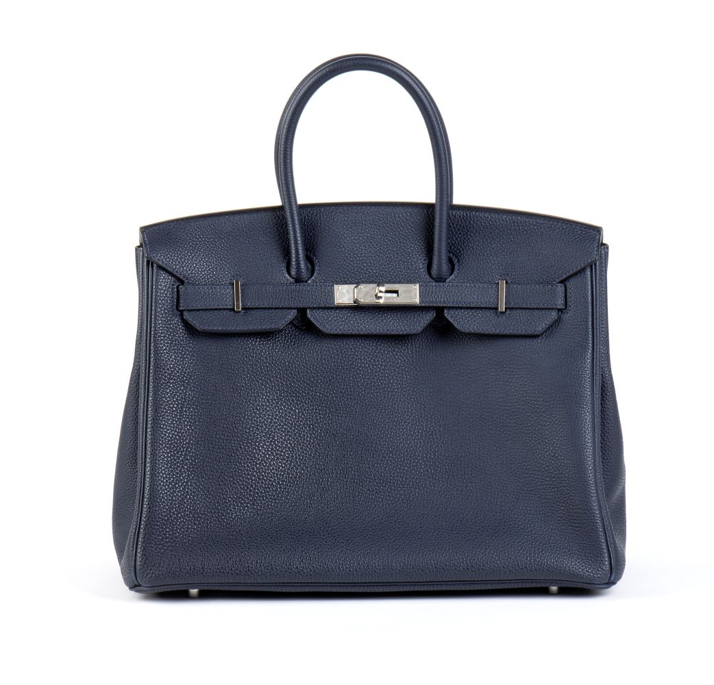 in pelle Togo colore Blu notte, inserti in palladio con dustbag e scatola