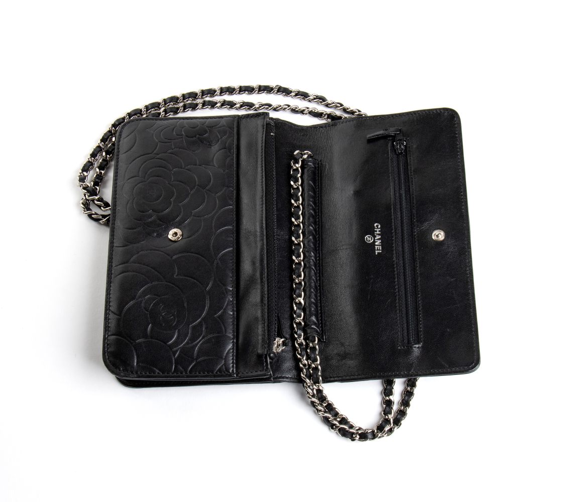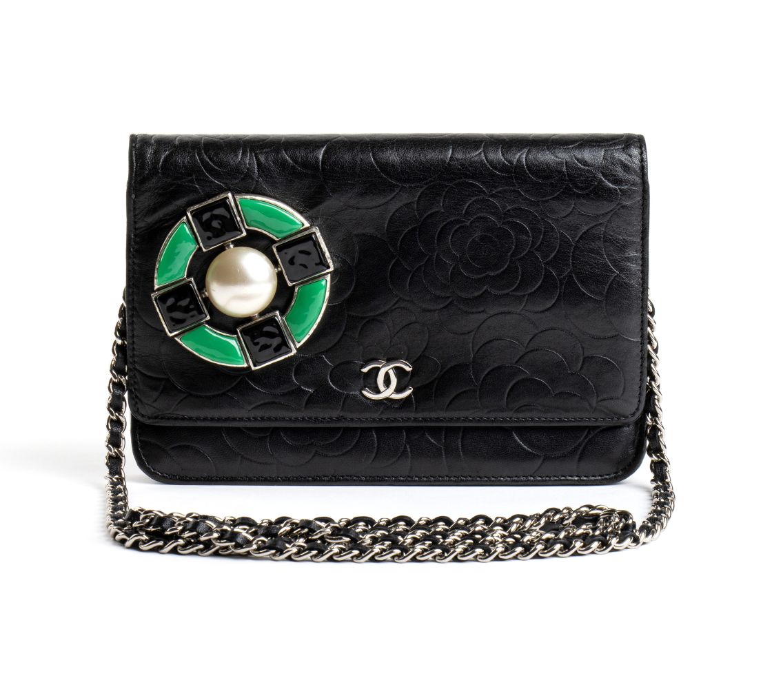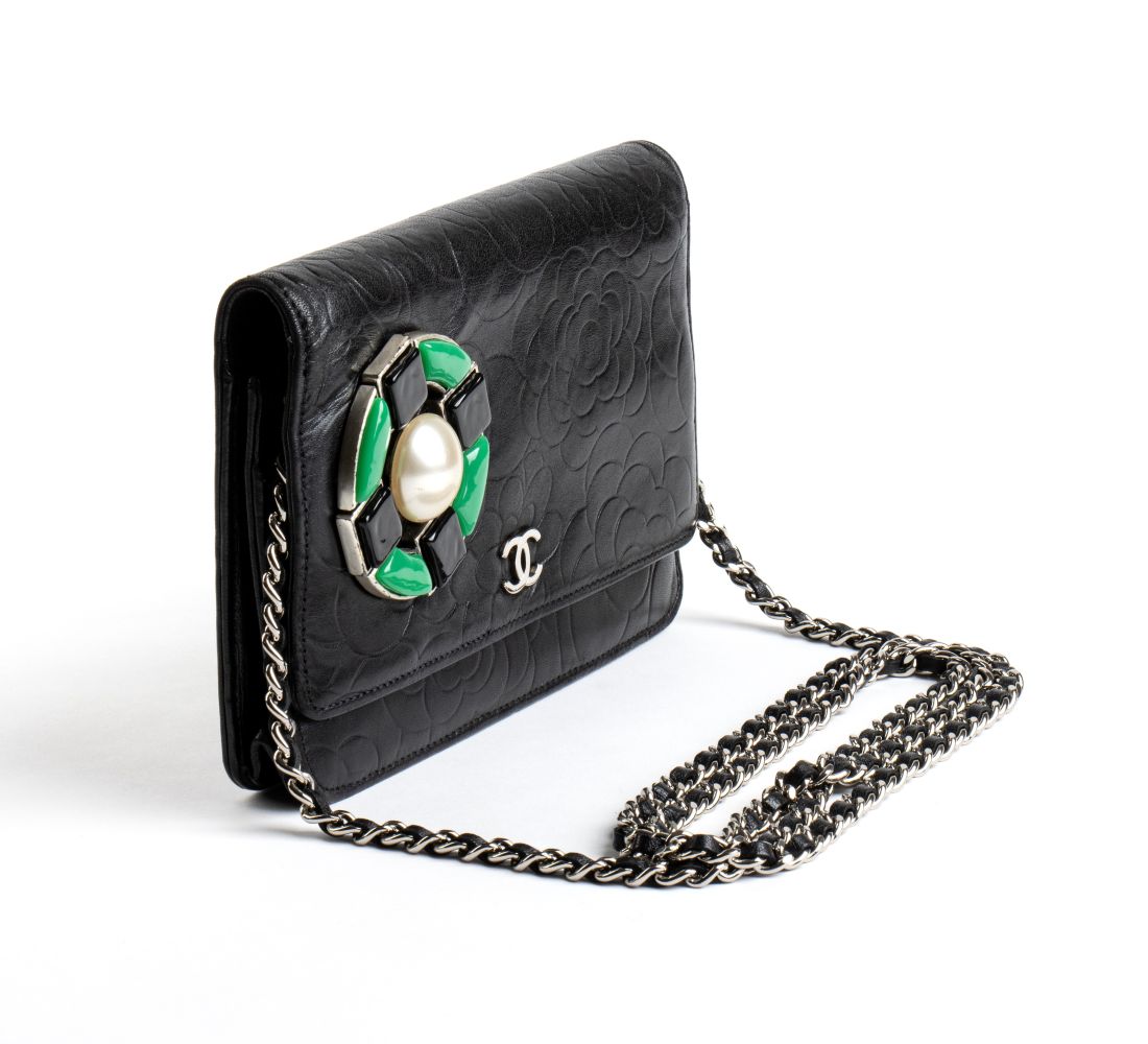 in pelle matelassé color nero, con brooch in risalto, dettagli in metallo argentato, tracolla a catena, cm 19,con sacchetto e scatola (NESSUN DIFETTO)