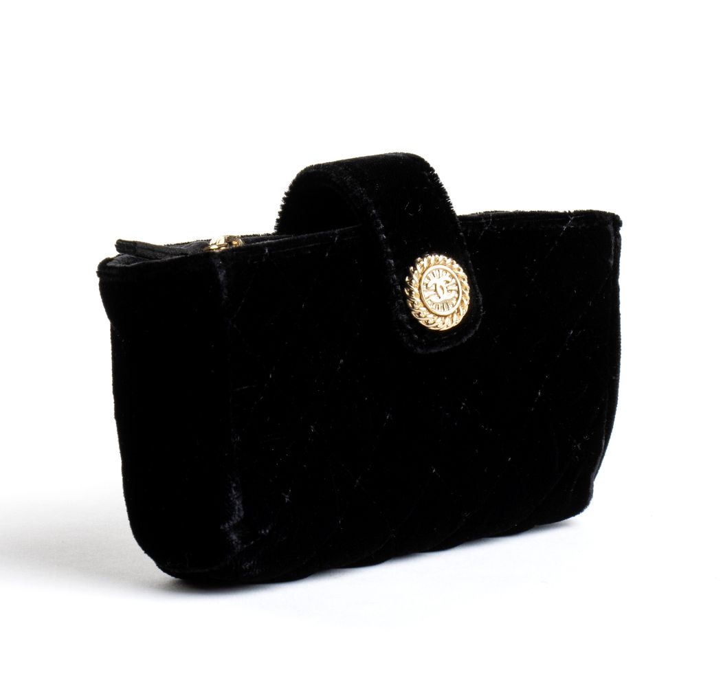 Chanel Pochette da sera in velluto nero con dettagli in oro. SERIAL CODE 14323691