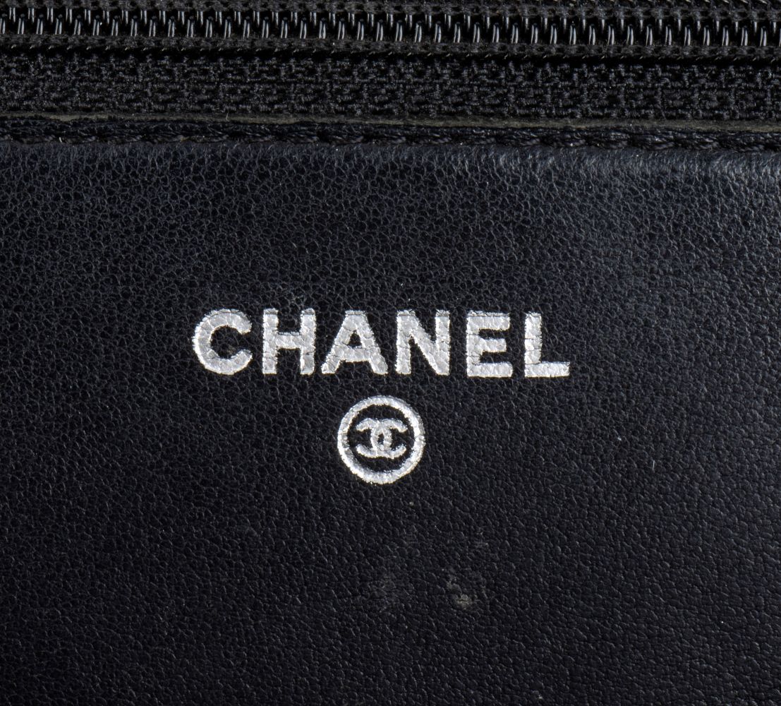 Chanel borsa Wallet On Chain, realizzata in pelle di agnello di colore nero, presenta una tracolla a catena intrecciata in pelle con dettagli in argento. (2012/2013)