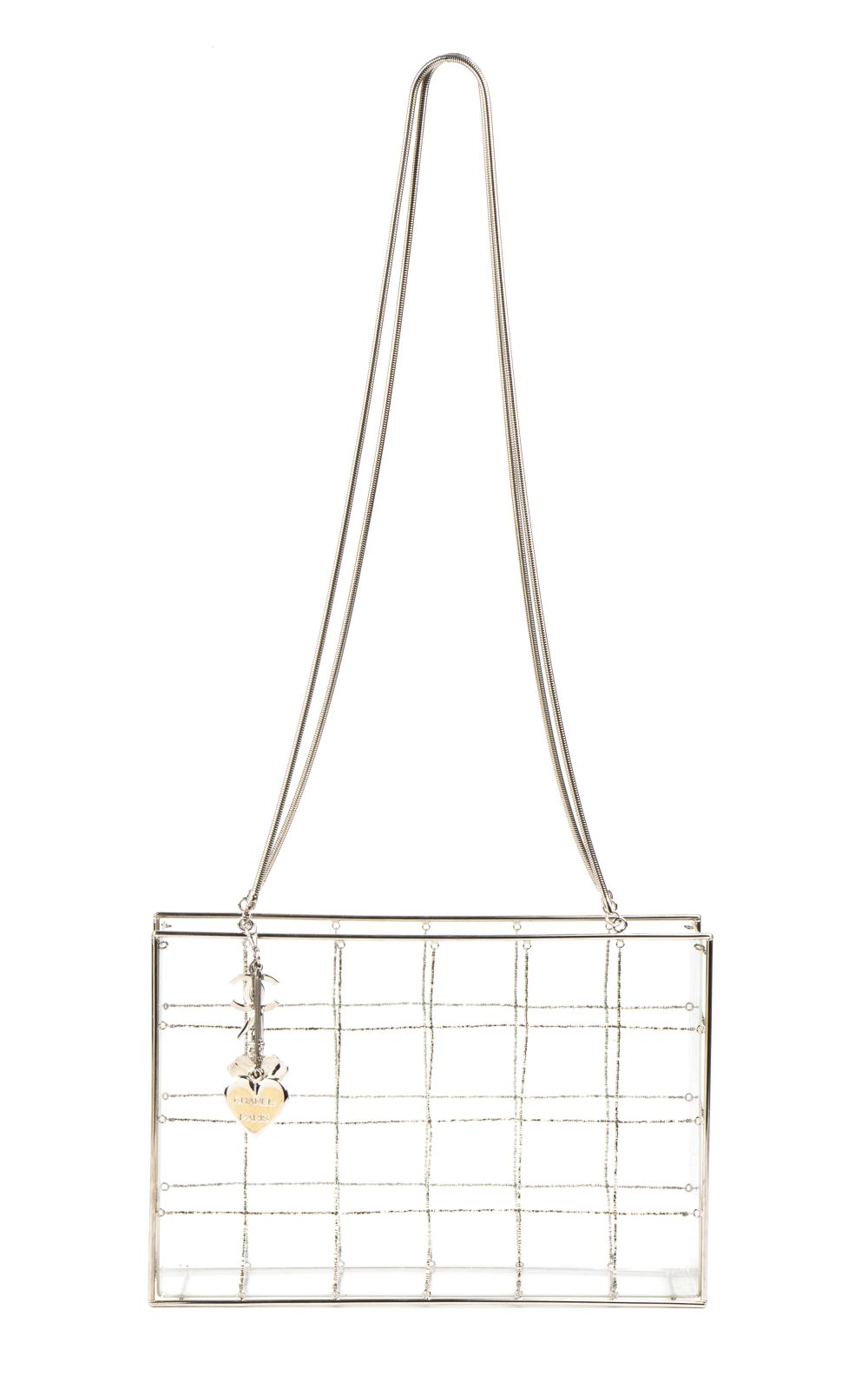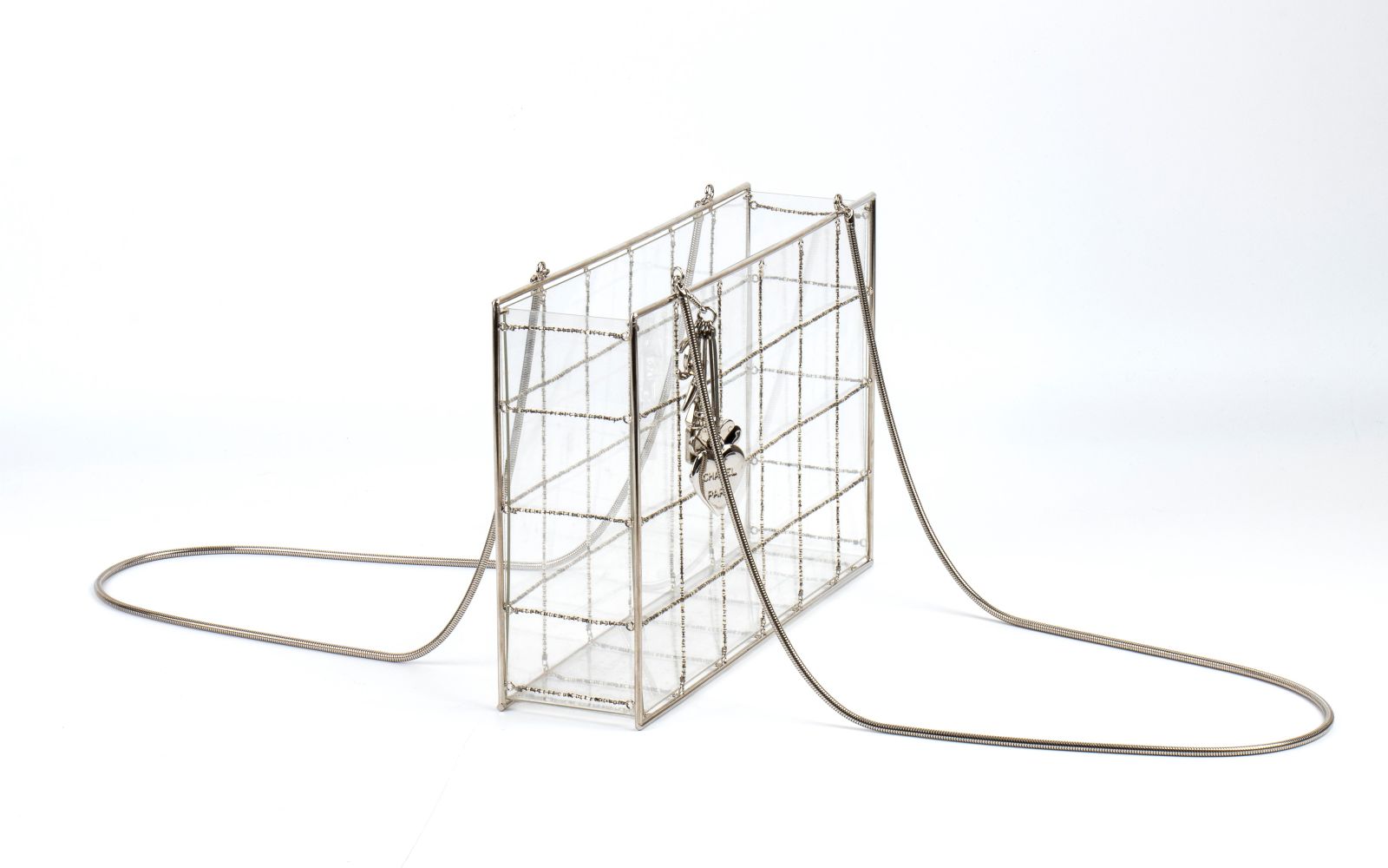 la borsa è realizzata in materiale PVC e rifinita con perline che vanno a formare su tutta la borsa un gioco geometrico, rendendola unica nel suo genere.