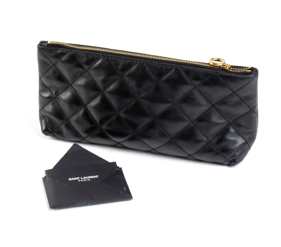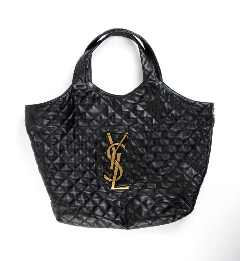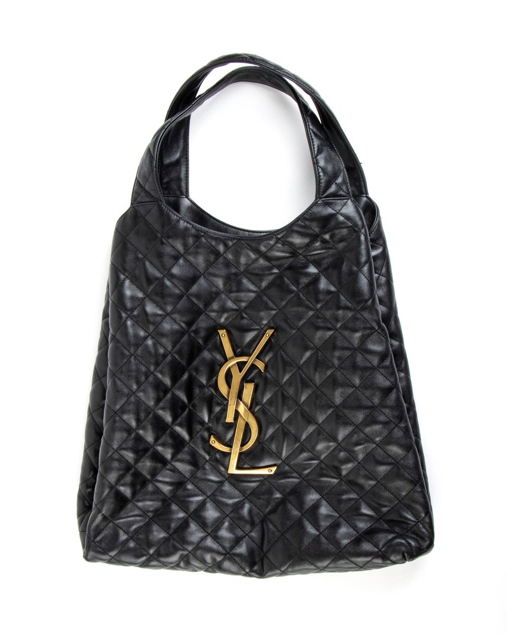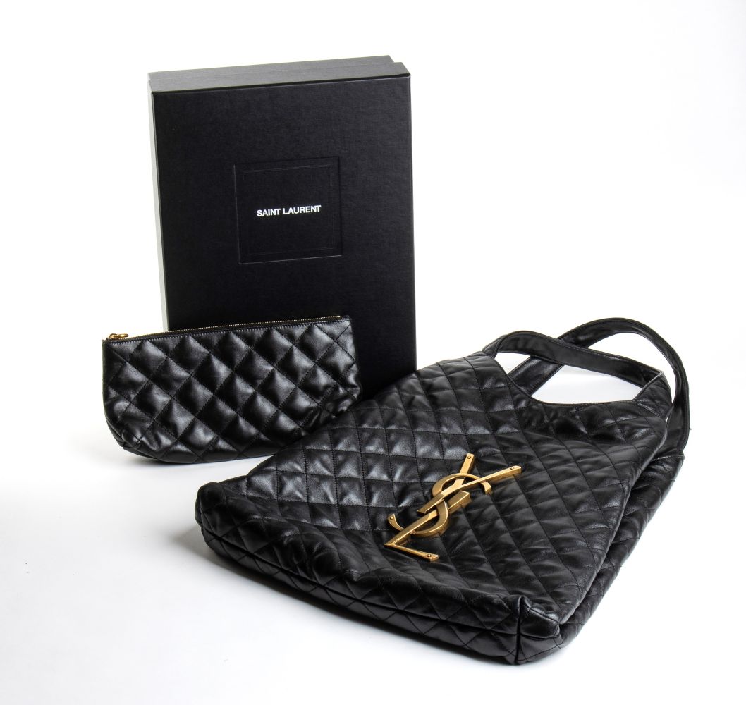 Maxy Shopping ICARE in pelle di agnello trapuntata con chiusura ad alamaro, pouch a zip rimovibile e inclusa, decorata con impunture trapuntate a quadri e il logo gioiello YSL.