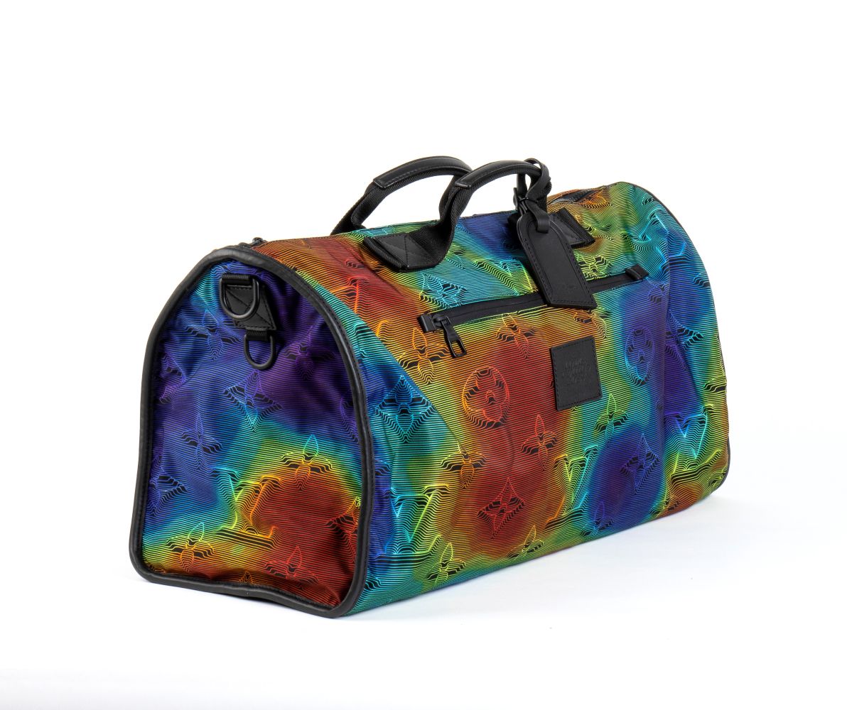 Louis Vuitton 2054 collezione Virgil Abloh borsa viaggio Keepall Bandouliere Monogram 50 Reversibile 3D
