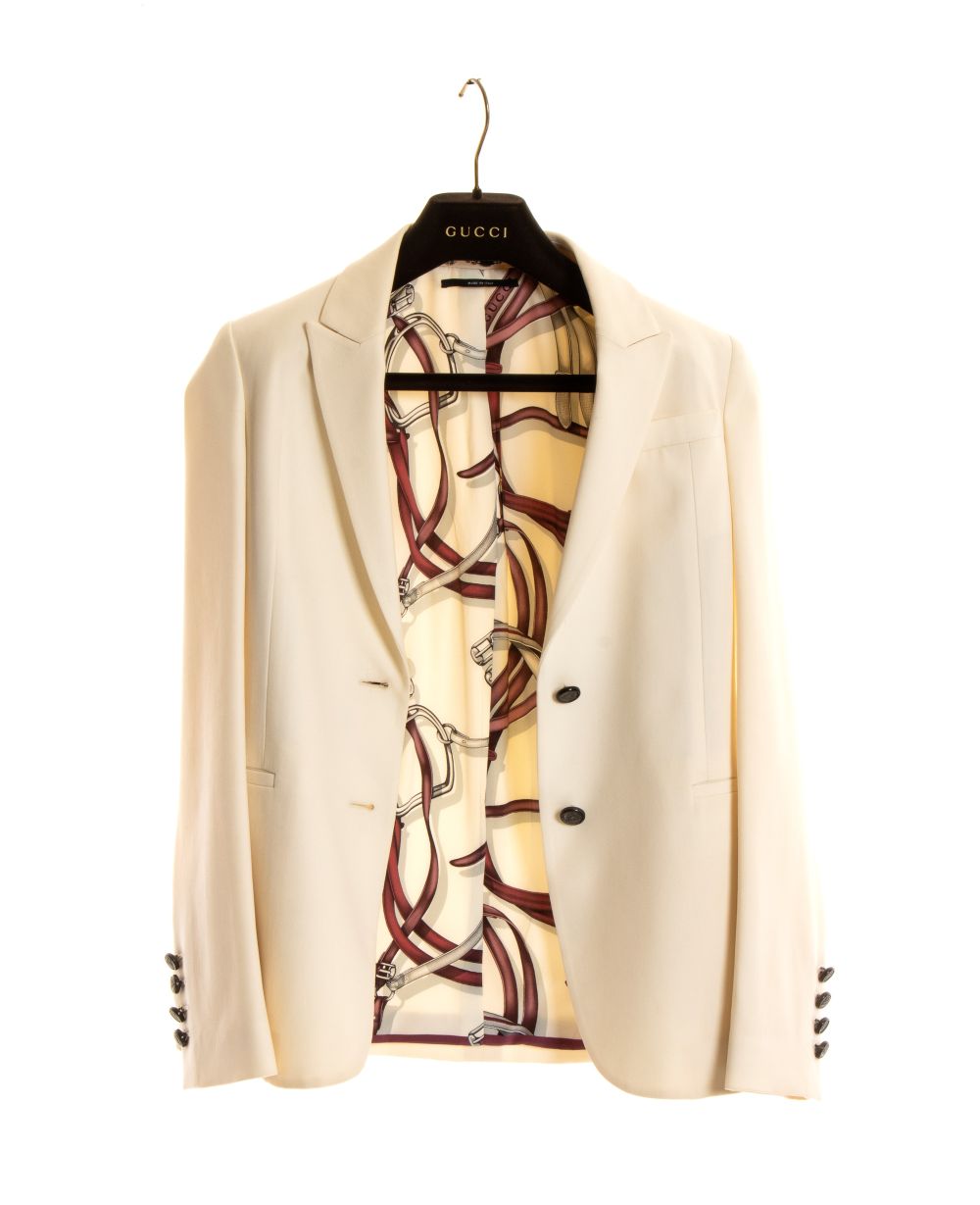Completo donna Gucci della collezione Equestre, realizzato in lana e seta, con la sua gruccia originale.
