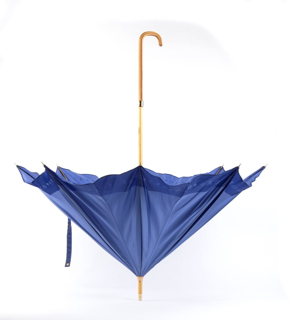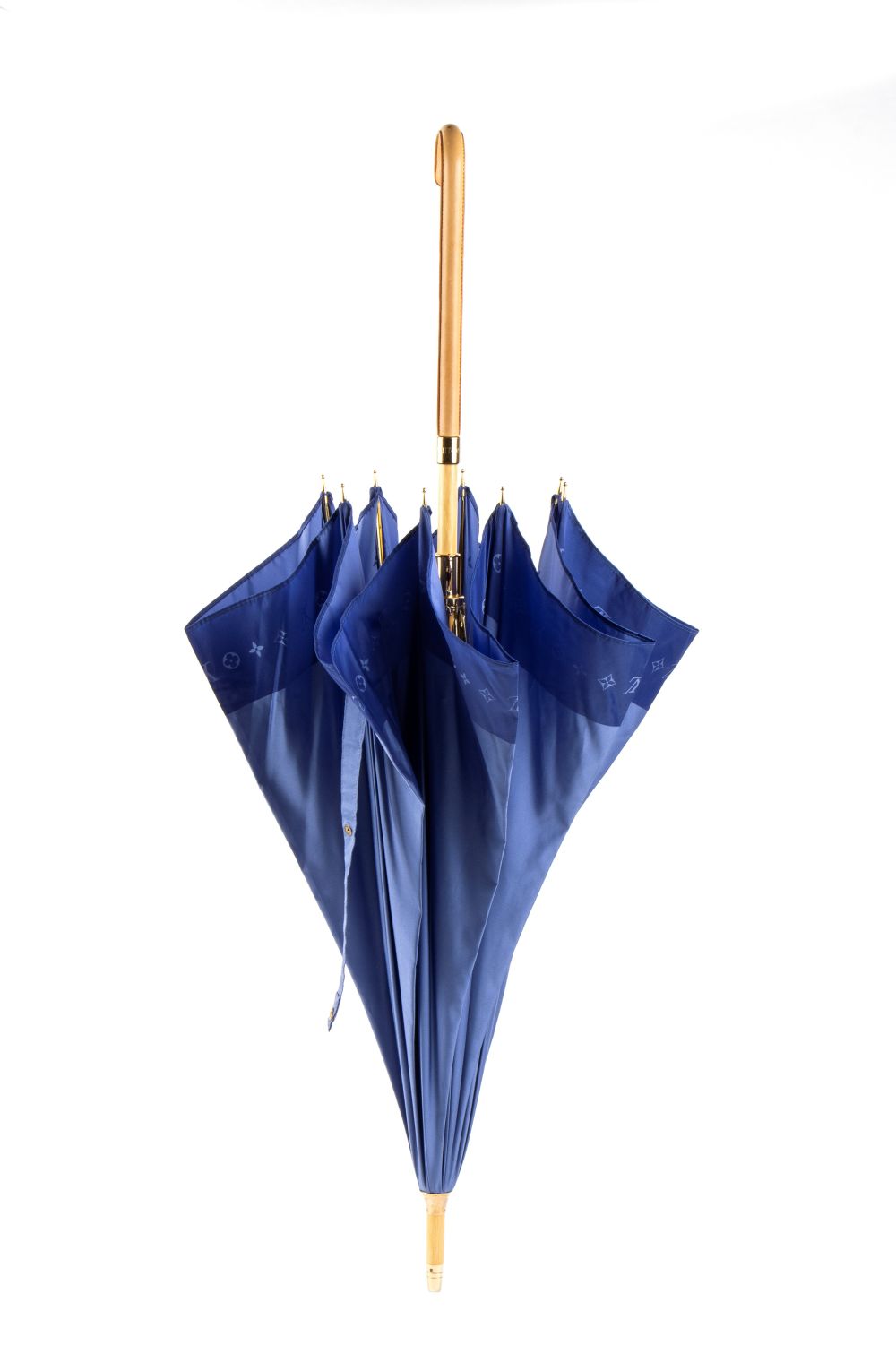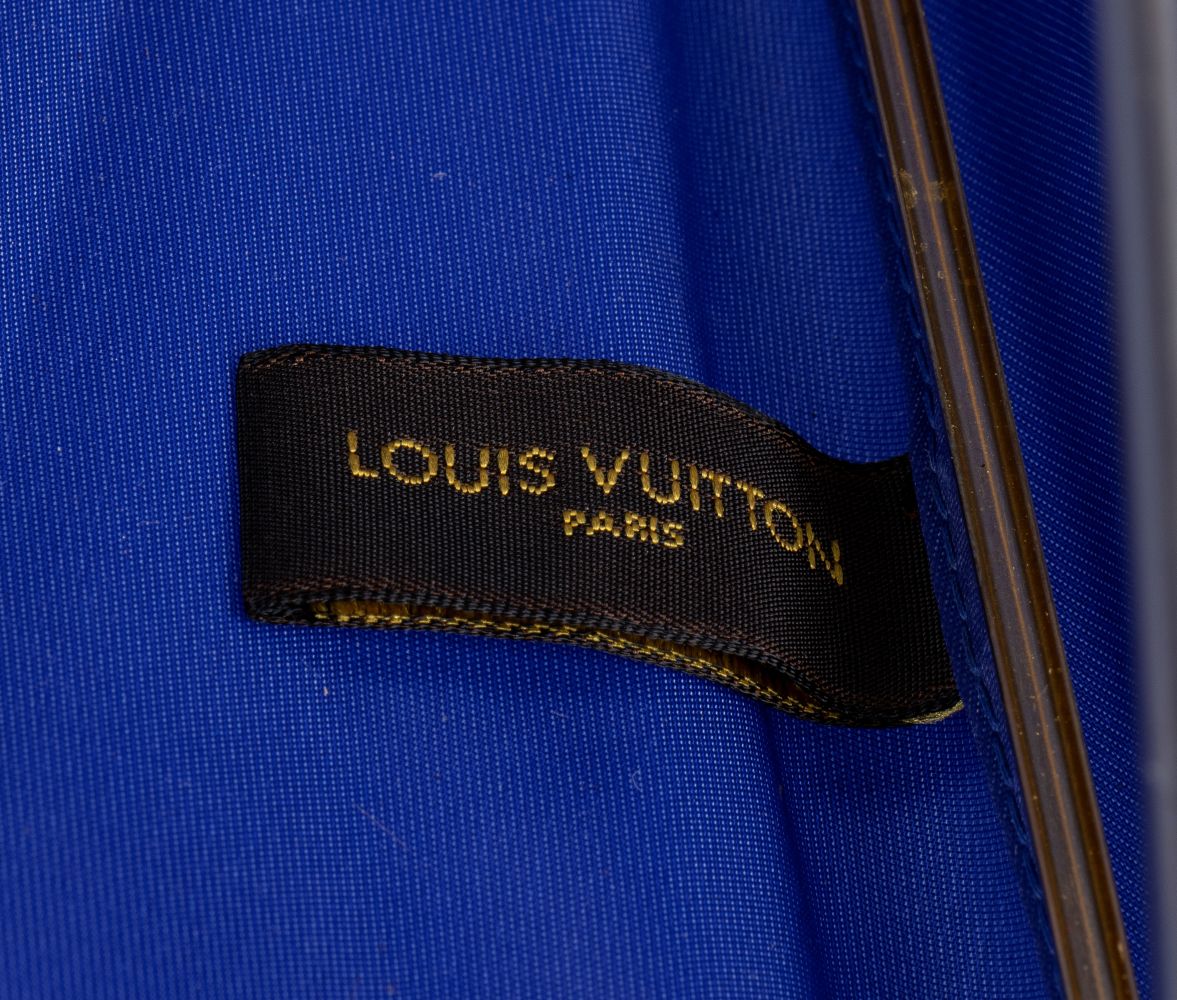 Louis Vuitton ombrello collezione Alma colore azzurro rifinito dal manico in pelle.