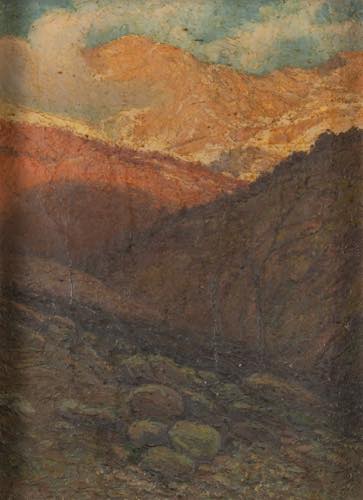 Pittore della prima metà del XX secolo. Paesaggio collinare sassoso.