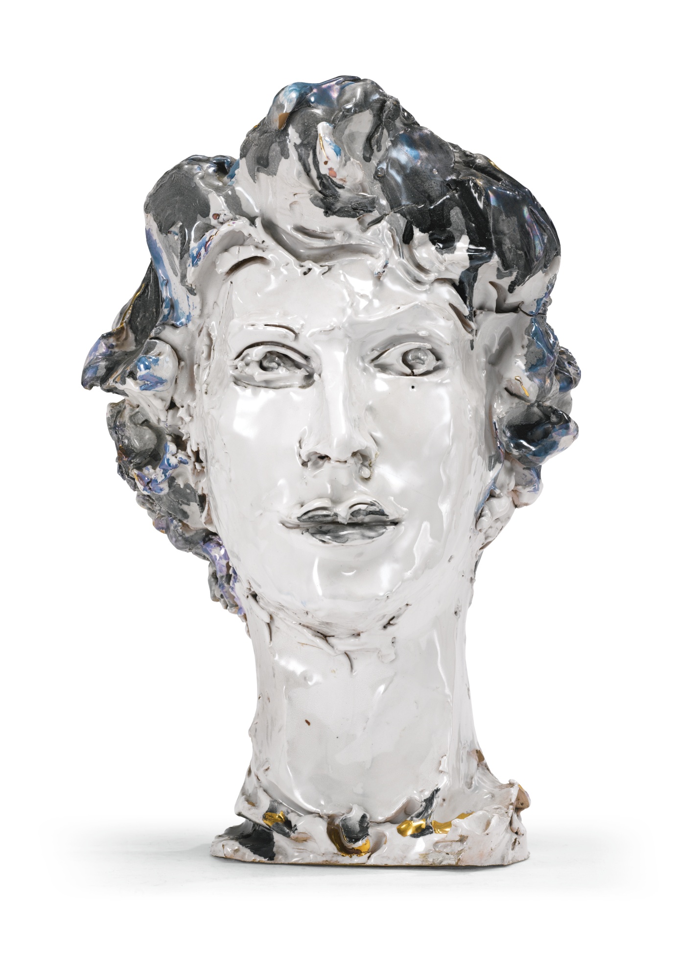 LUCIO FONTANA 1899 - 1968 BUSTO signed and dated 54 on the reverse, glazed ceramic firmato e datato 54 sul retro ceramica smaltata policroma cm 34x22x22 Opera registrata presso la Fondazione Lucio Fontana, Milano, con il n. 1900/252 L'opera è accompagnata da certificato su fotografia rilasciato dalla Fondazione Lucio Fontana, Milano PROVENANCE Acquistato dalla famiglia dell'attuale proprietaro direttamente dall'artista CATALOGUE NOTE L'opera è accompagnata da attestato di libera circolazione An export licence is available for this lot