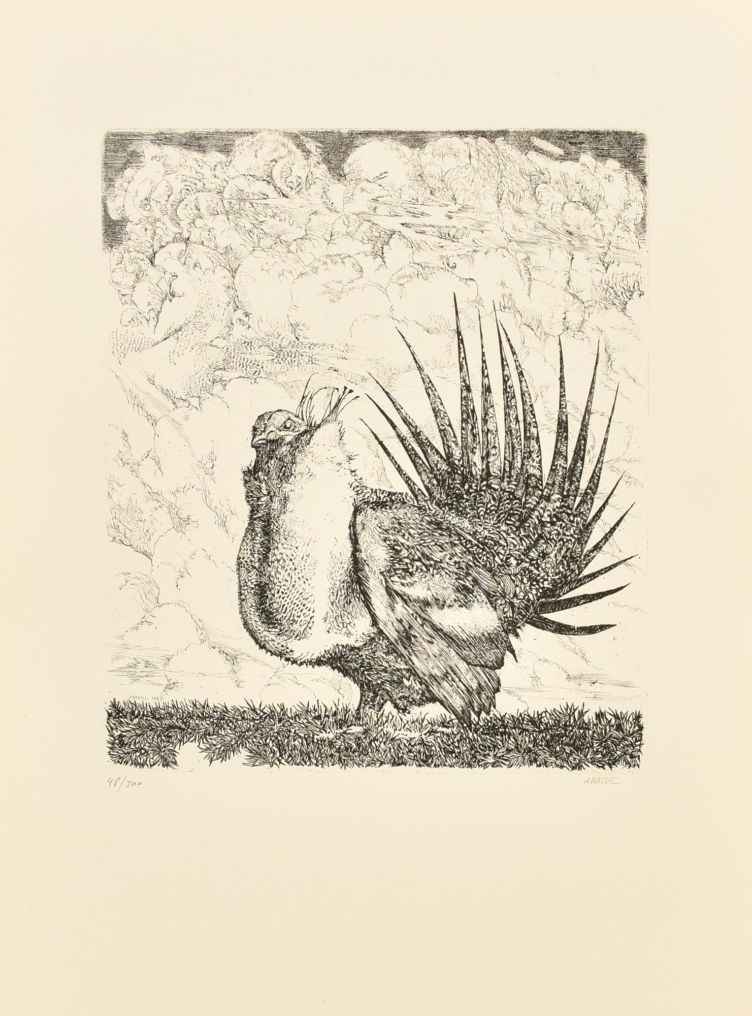 Abacuc VOLATILE incisione, cm 31x24,5, su foglio cm 50x35; es. 48/100 firma,...