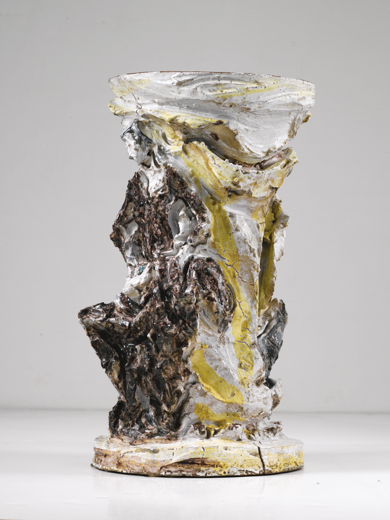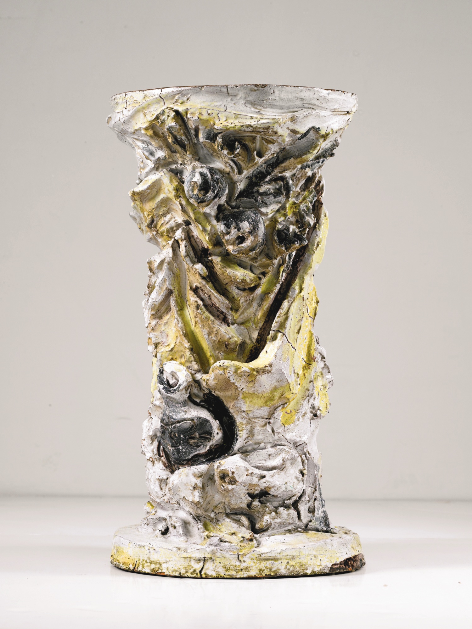 LUCIO FONTANA 1899 - 1968 GAMBA DI TAVOLINO signed and dated 52, glazed ceramic firmato e datato 52 terratotta smaltata h cm 64, diam. cm 33 Opera registrata presso la Fondazione Lucio Fontana, Milano, con il numero 3724/1 L'opera è accompagnata dal certificato su fotografia della Fondazione Lucio Fontana, Milano CATALOGUE NOTE L'opera è accompagnata da attestato di libera circolazione An export licence is available for this lot