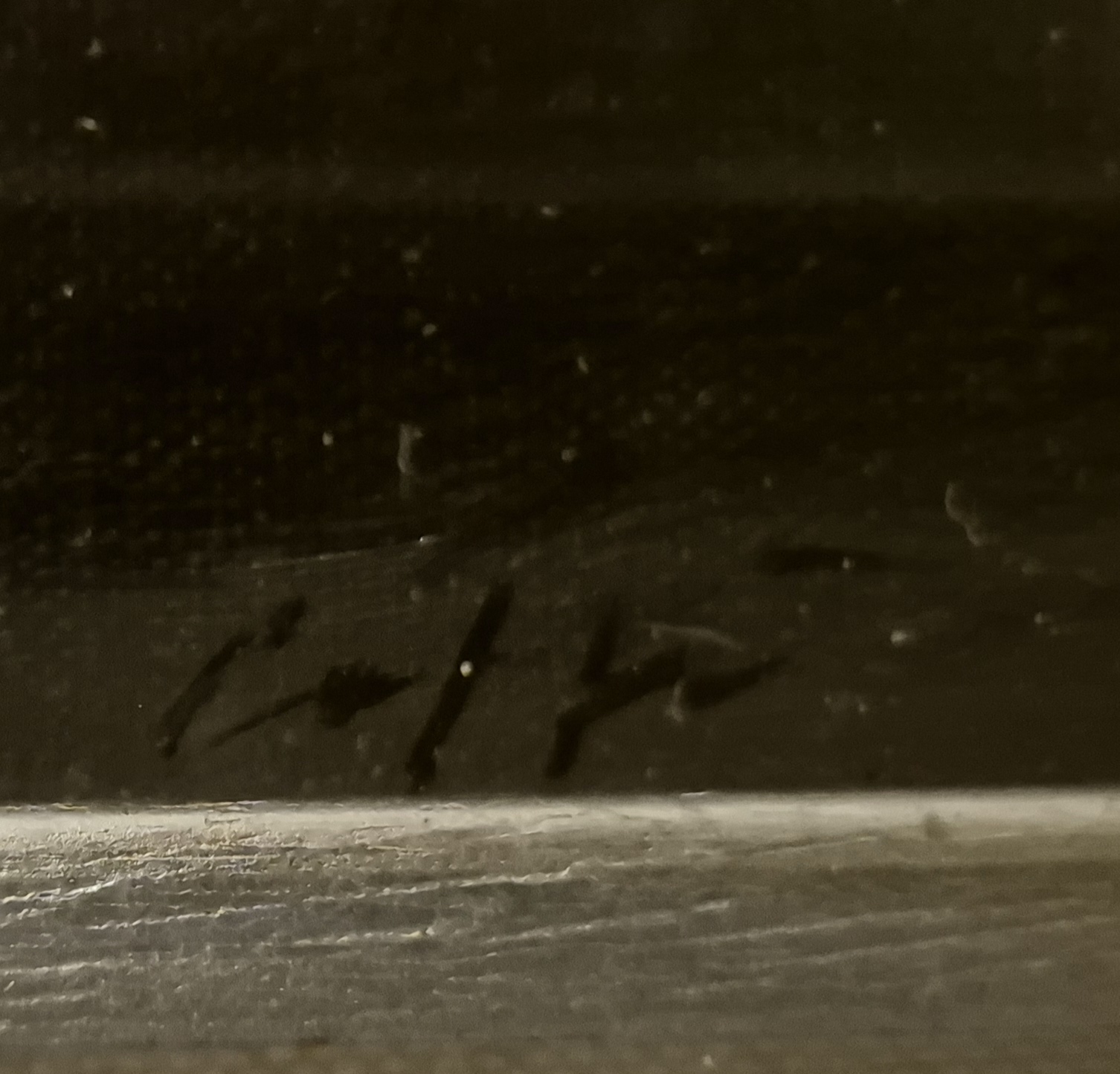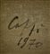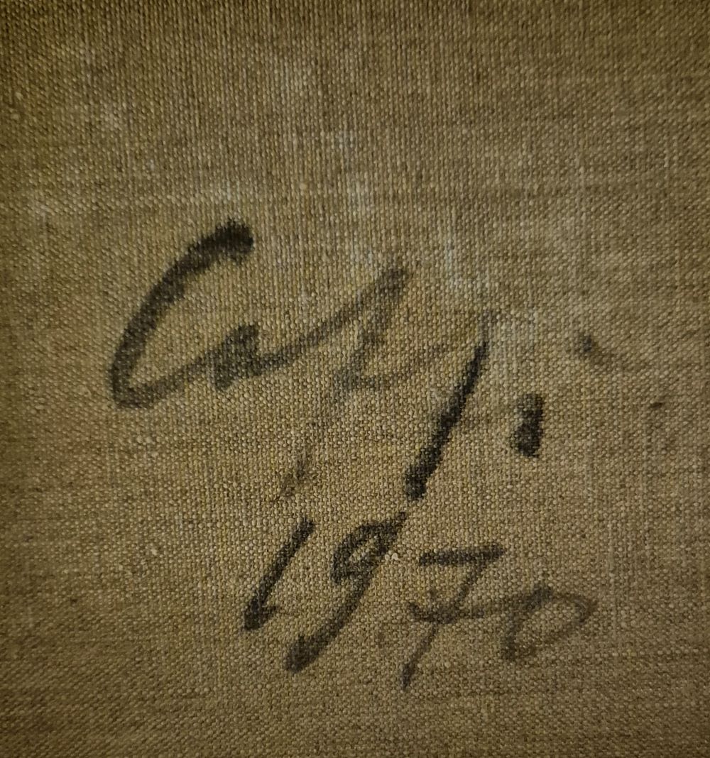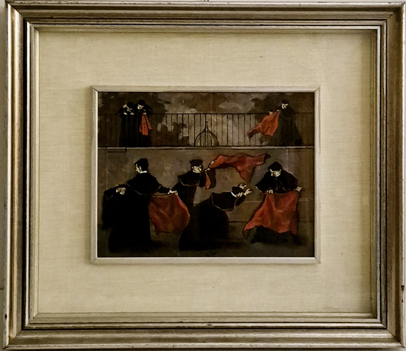 Nino Caffè (Alfedena 1908 - Pesaro 1975). Romani rossi e neri, 1970. Cm 19x25. In cornice cm 38x43,5. Olio su tela. Firmato in basso al centro Caffè. Al verso titolato, datato e firmato Caffè 1970 Romani rossi e neri.