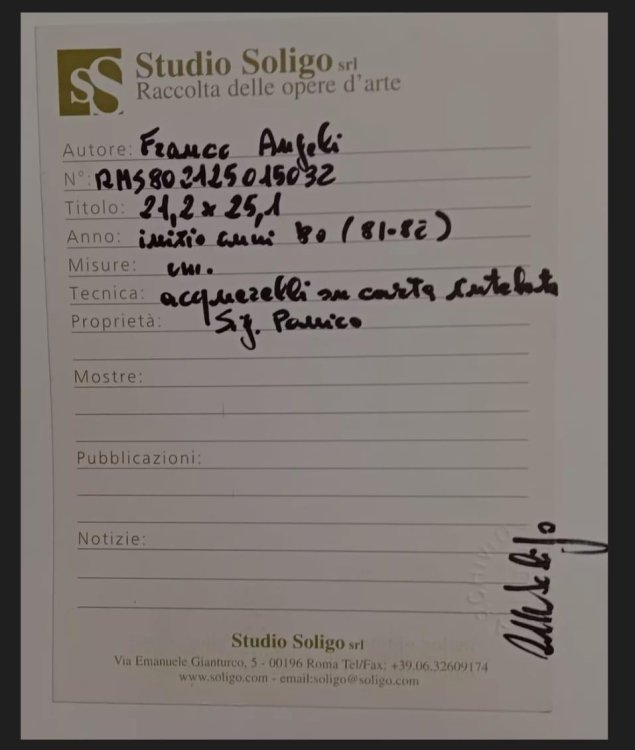 Acquerello su carta intelata. Firmato in basso a destra "Franco Angeli".