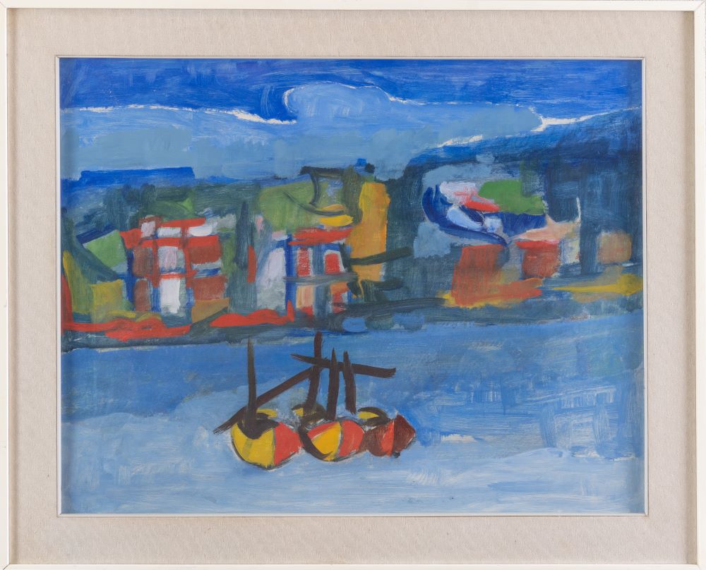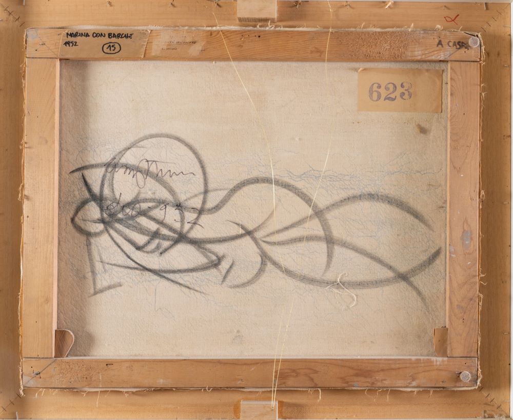 Giovanni Ciangottini (Umbertide 1912 - Bologna 1988). Marina con barche, 1952.