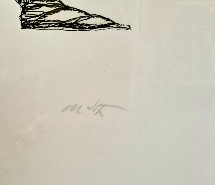 Luciano De Vita (Ancona 1929 - Bologna 1992). Senza titolo. Cm 69x48,5. In cornice cm 77x56,5. Incisione su carta Fabriano. Es. 51/100. Numerata a matita in basso a sinistra. Firmata a matita in basso a destra. In cornice con vetro.