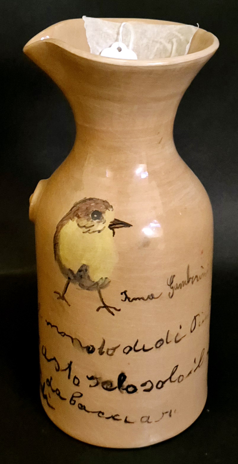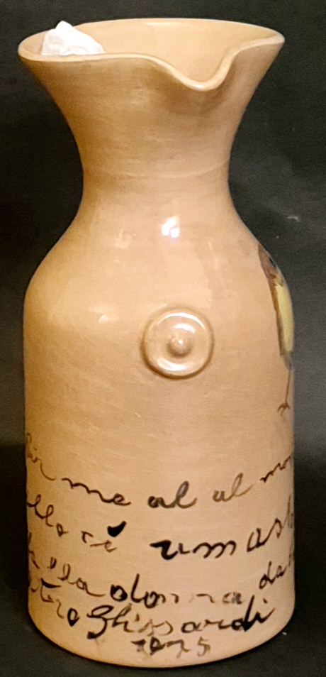 Terracotta smaltata. Esemplare 3/36. Sul corpo del vaso animali dipinti e scritte. Firmata e datata Pietro Ghizzardi 1975.