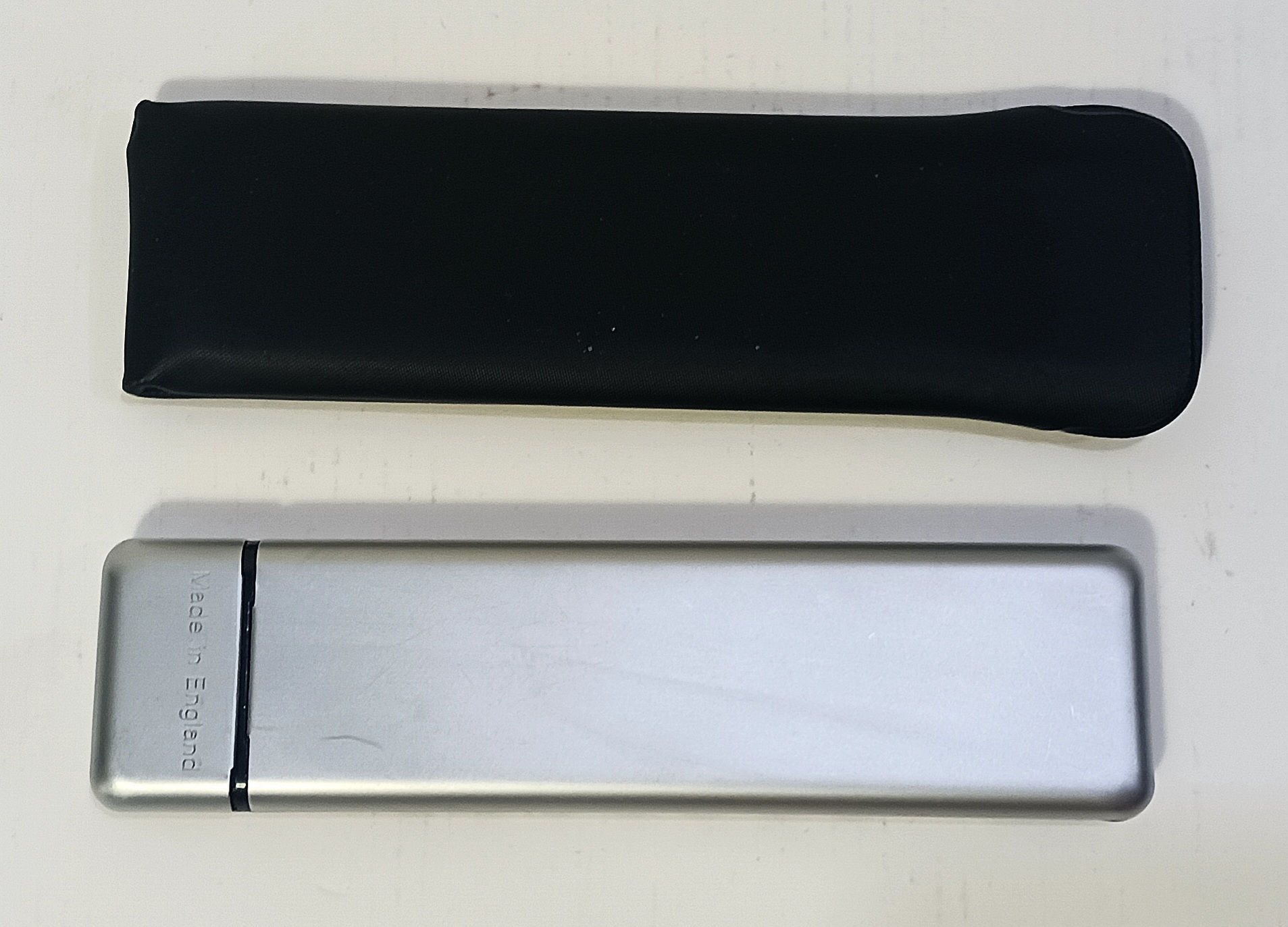 Sinclair. Calcolatrice mod. Sovereign, Inghilterra, 1976. Con custodia originale. Perfettamente funzionante. Condizioni di conservazione perfette. Cm. 14x4.