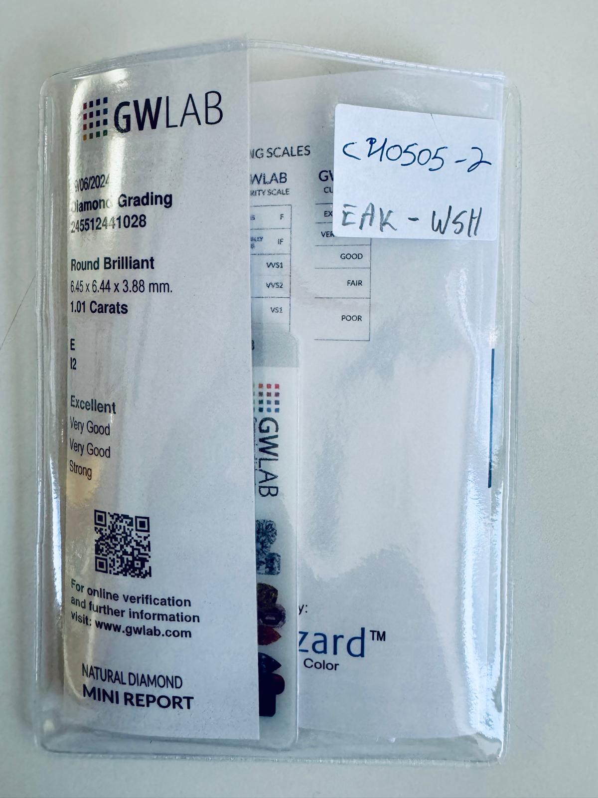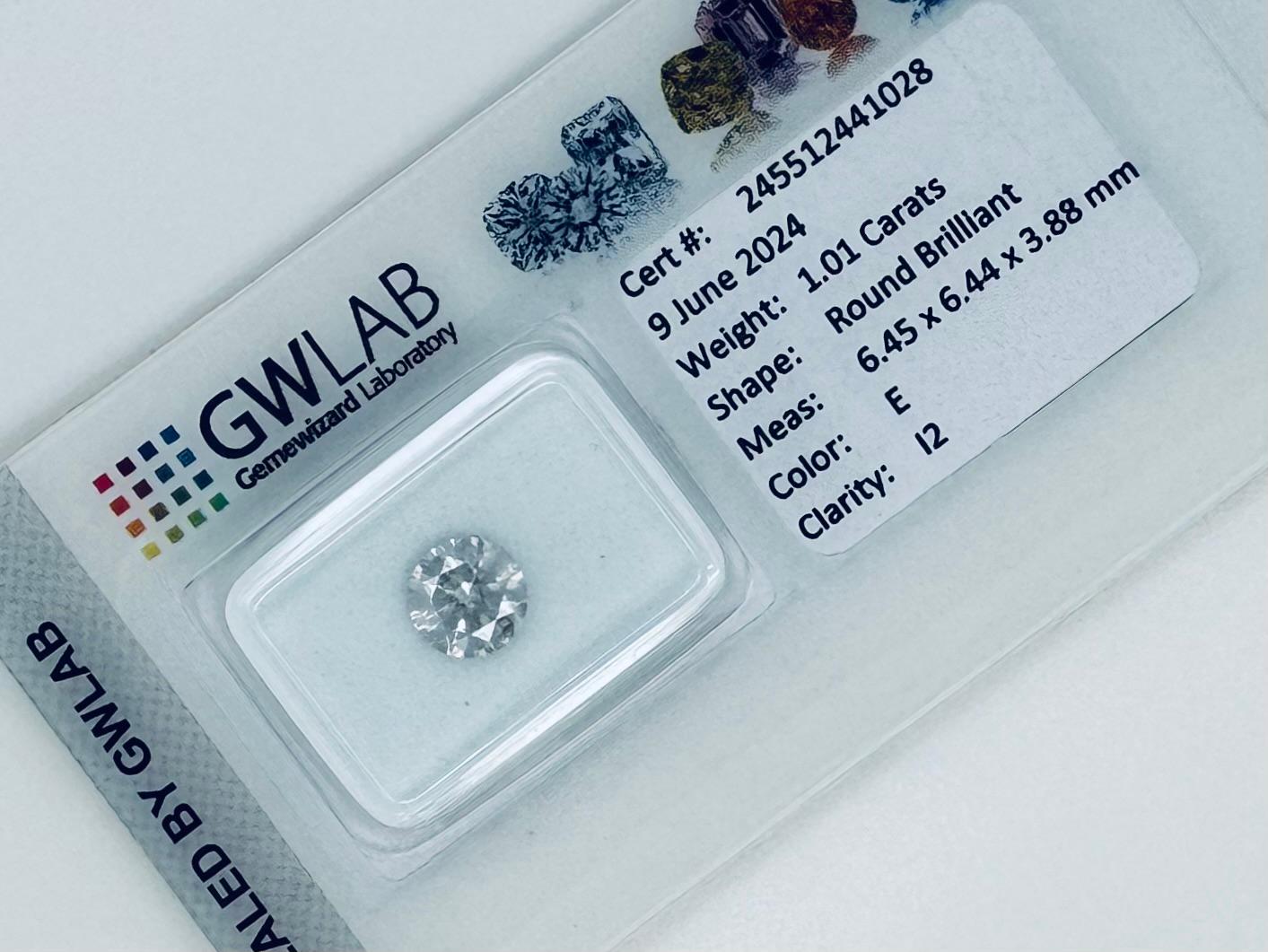 DIAMANTE NATURAL POLISHED 1,01 CARATI COLORE E - PUREZZA I2 - TAGLIO BRILLANTE - CERTIFICATO GW - C40505-2