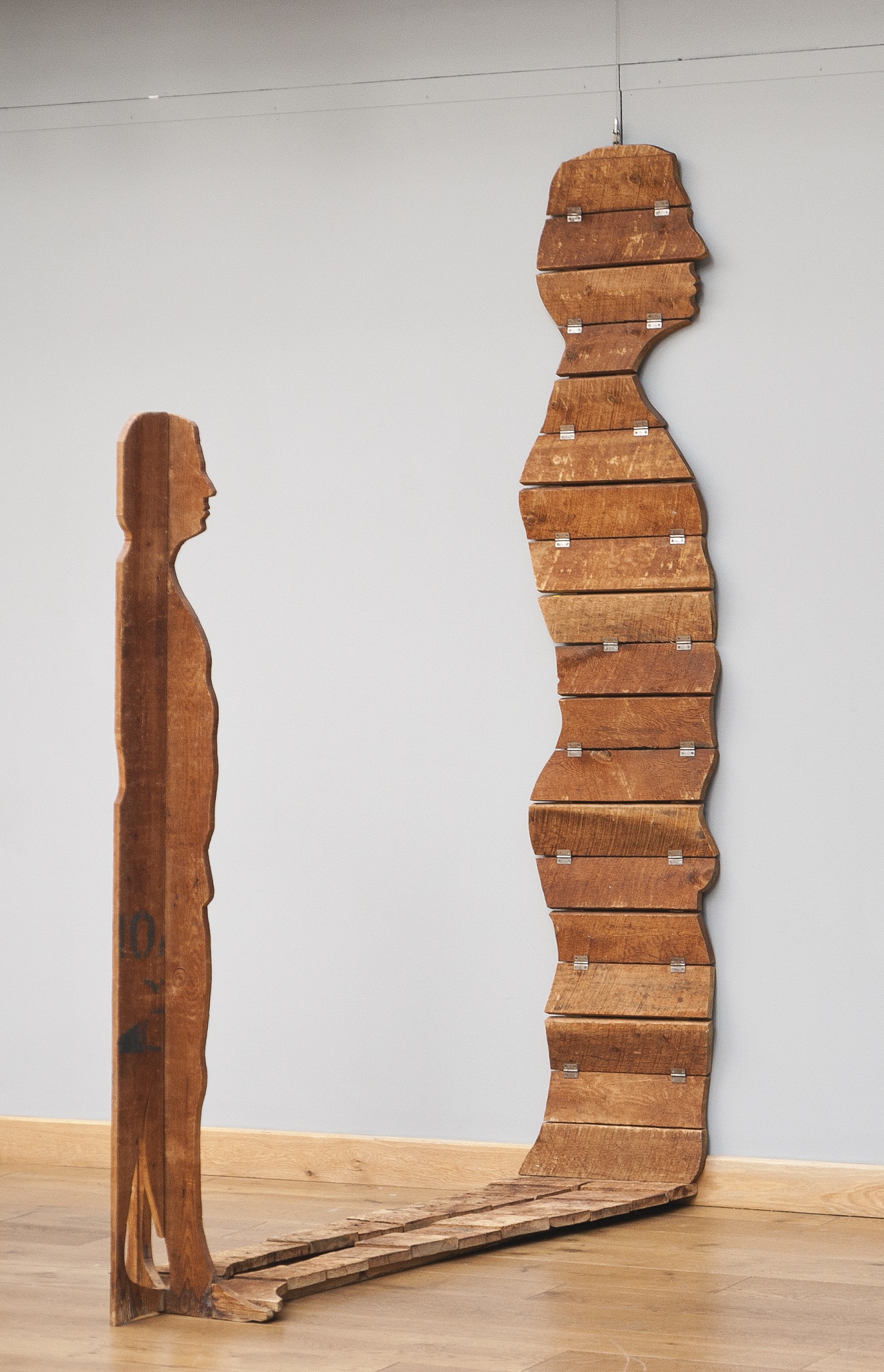 MARIO CEROLI N. 1938 L'UOMO E LA SUA OMBRA shaped wood. Executed in 1966 legno sagomato cm 249x157x50 (L'uomo h cm 187) Eseguito nel 1966 PROVENANCE Galleria Bonino, New York Collezione Albert List, Connecticut Ivi acquistato dall'attuale proprietario nel 2000 EXHIBITED New York, Galeria Bonino, Italy. New Tendencies. Bonalumi, Castellani, Ceroli, Grisi, Scheggi, Tacchi, 1966 Buffalo, Albright -Knox Art Gallery, Mario Ceroli, 1969